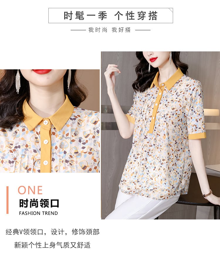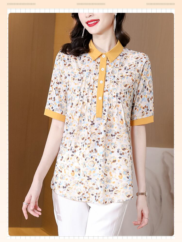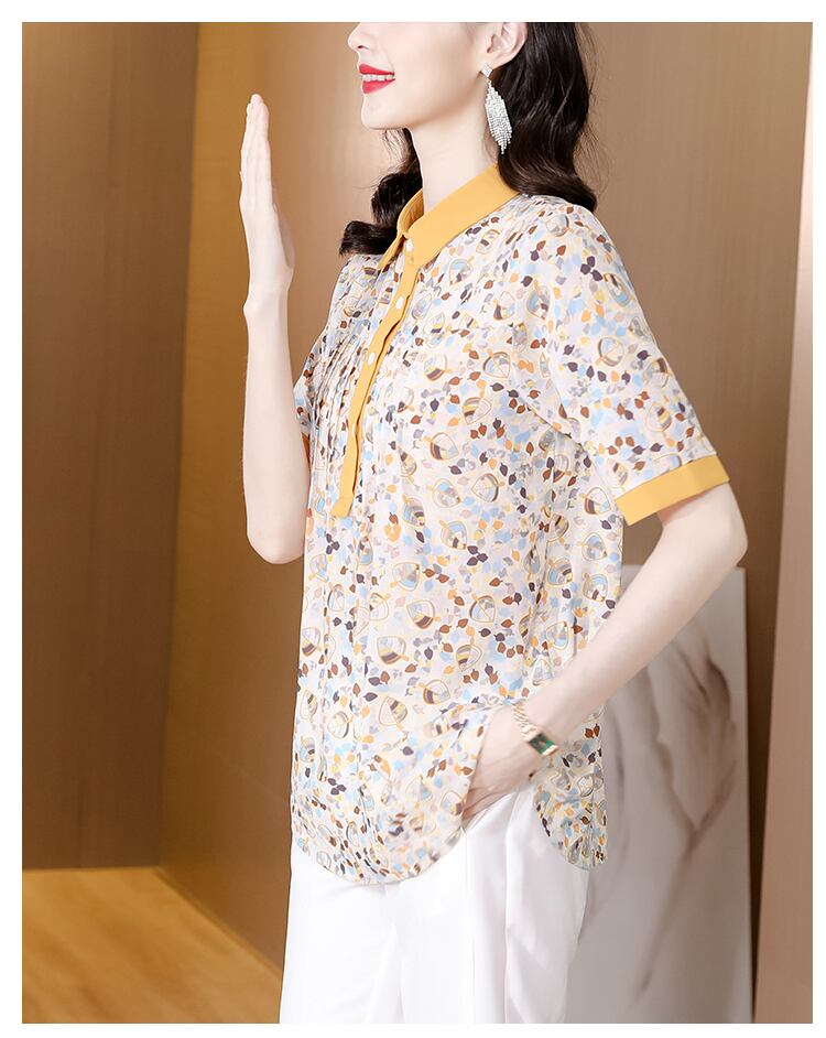 シャツ サマーカラープリント薄手トップス 大きめサイズ 夏物 シルク muto53806797632