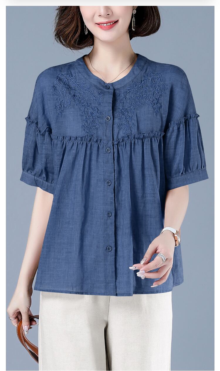 シャツ ショートサマー薄手トップス コットン 大きめサイズ 夏物 muto6563487709