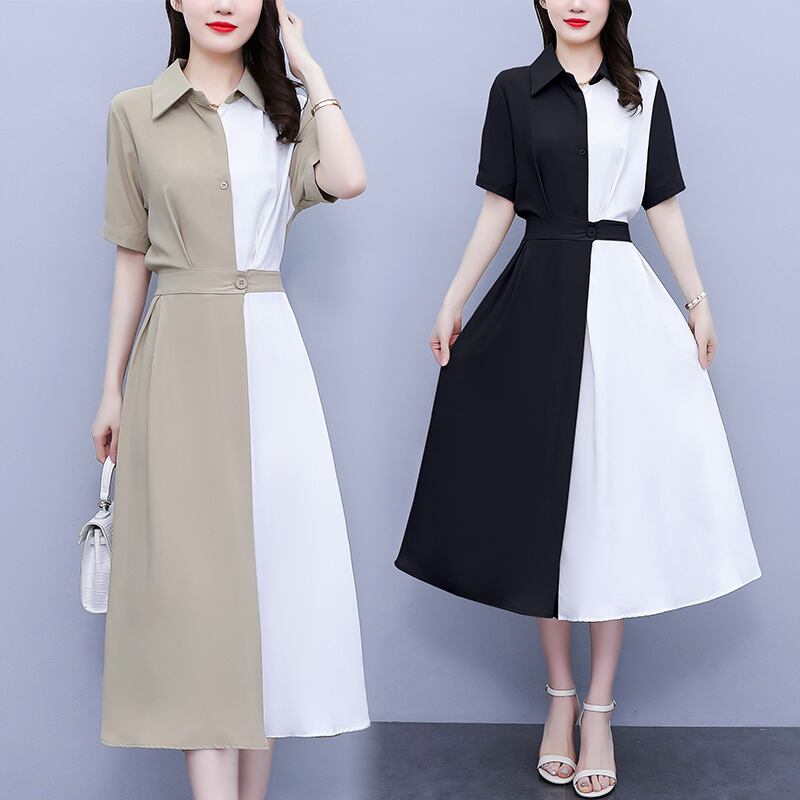 シャツ ドレス サマーウェスト薄手スカート 大きめサイズ 夏物 ステッチ muto8375620559