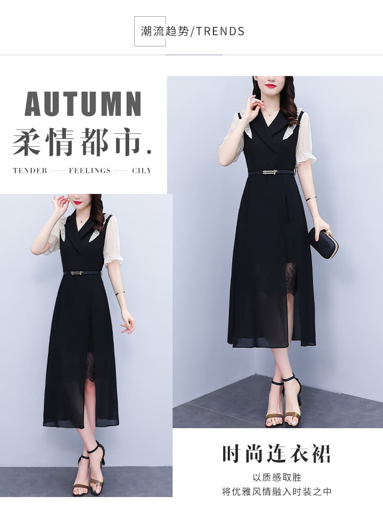 カラーシフォンドレス サマー薄手ロングスカート 大きめサイズ 夏物 ステッチ muto43674767587