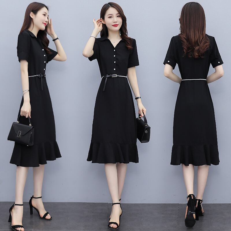 ブラックドレス サマースリムシャツ スカート 大きめサイズ 夏物 muto39858709588