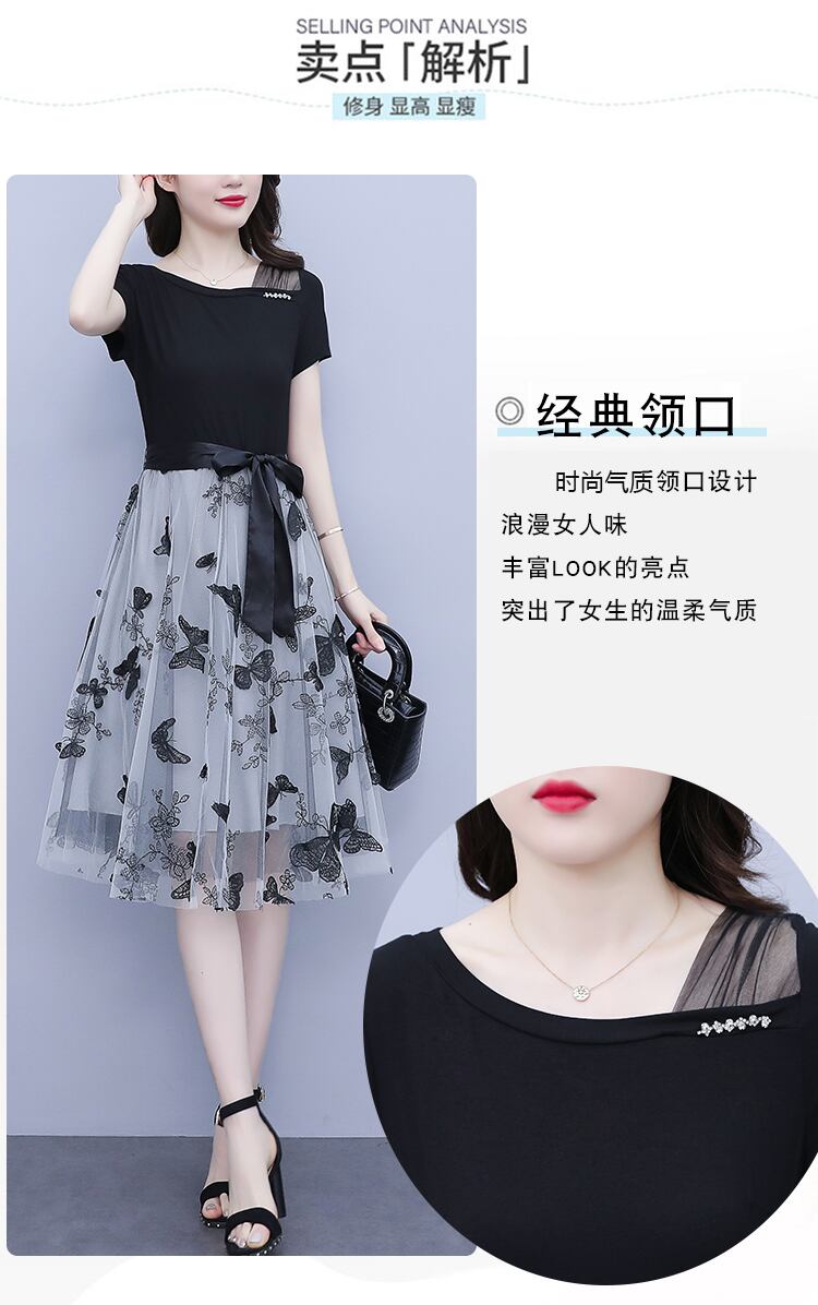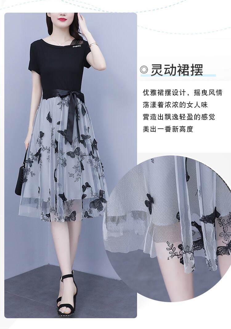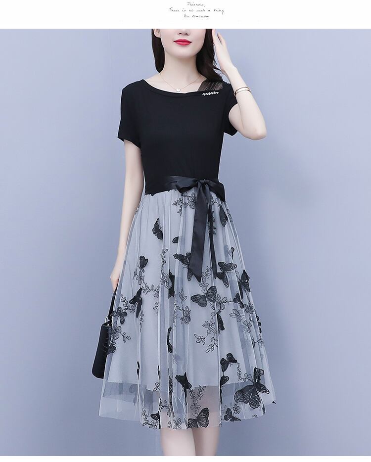 ブラックメッシュドレス サマーウェストスカート 大きめサイズ 夏物 ステッチ muto2864899099