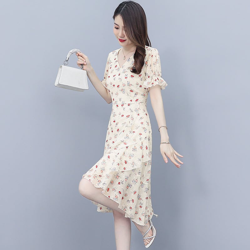 フローラルシフォンスカート サマードレス 薄手 大きめサイズ 夏物 花柄 muto63362766782