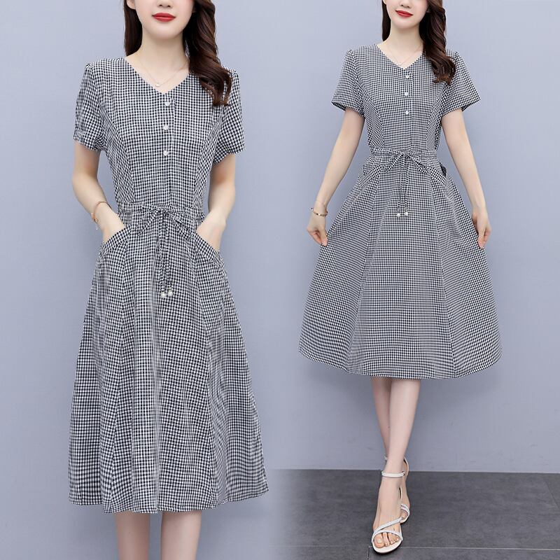 ドレス サマースタイルスリムウェストVネックスカート 大きめサイズ 夏物 muto9816837112