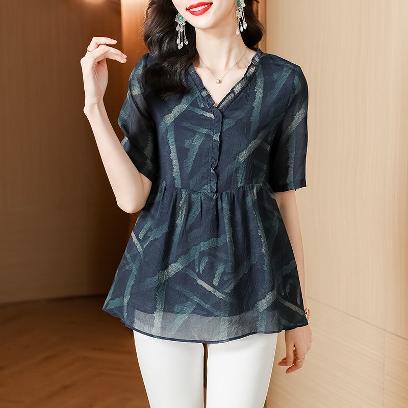 シフォンシャツ サマールーズ薄手トップス スタイル 大きめサイズ 夏物 muto27054030991
