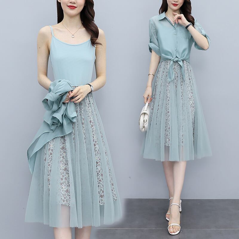 メッシュフローラルドレス サマーシフォンスカート セット 大きめサイズ 夏物 花柄 muto40217514480