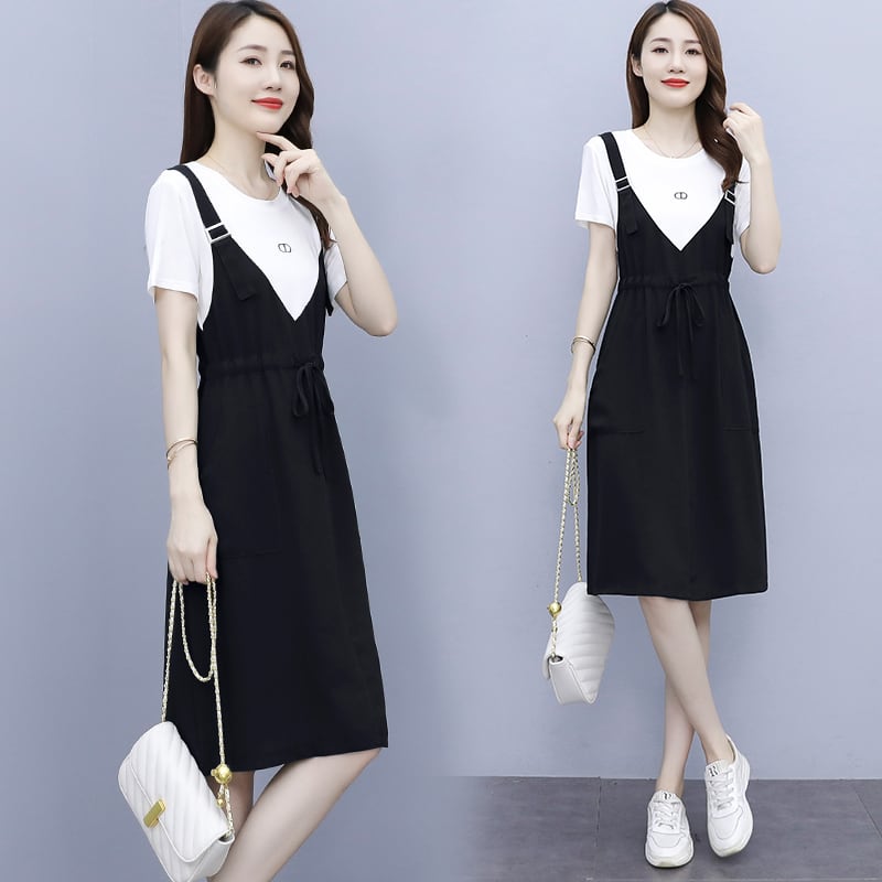スカート サマー薄手ロングルーズウェストドレス 大きめサイズ 夏物 muto34973707997