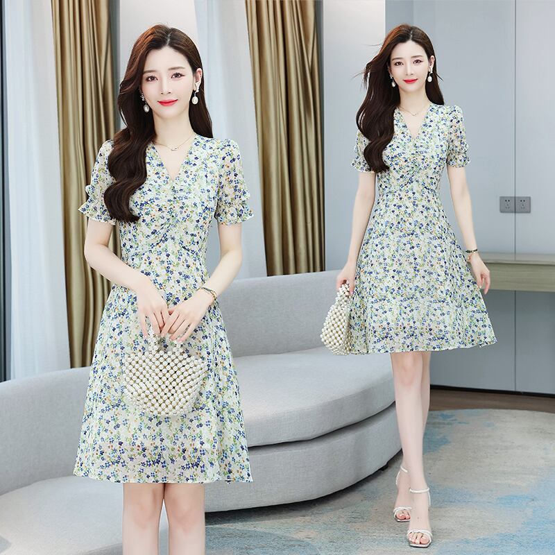 フローラルシフォンドレス サマーVネックスリムスカート 大きめサイズ 夏物 花柄 muto93393628193