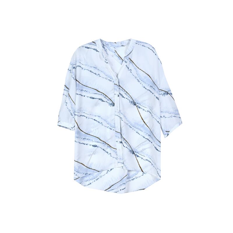 ルーズ薄手シャツ サマープリントVネックトップス 大きめサイズ 夏物 シルク muto2852681262