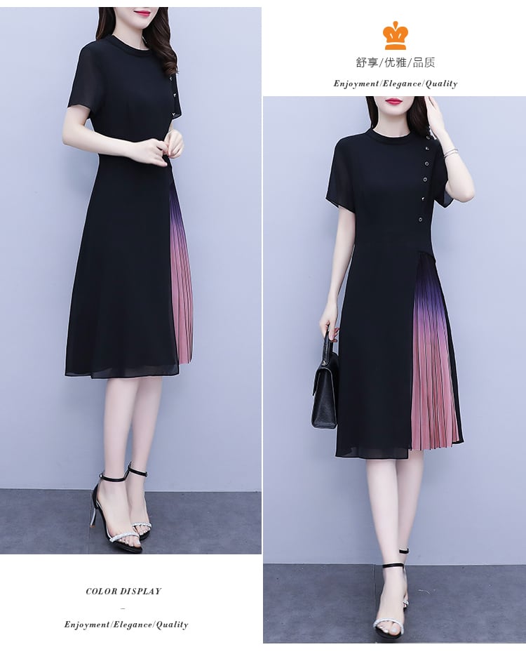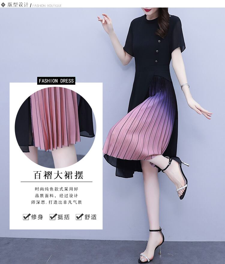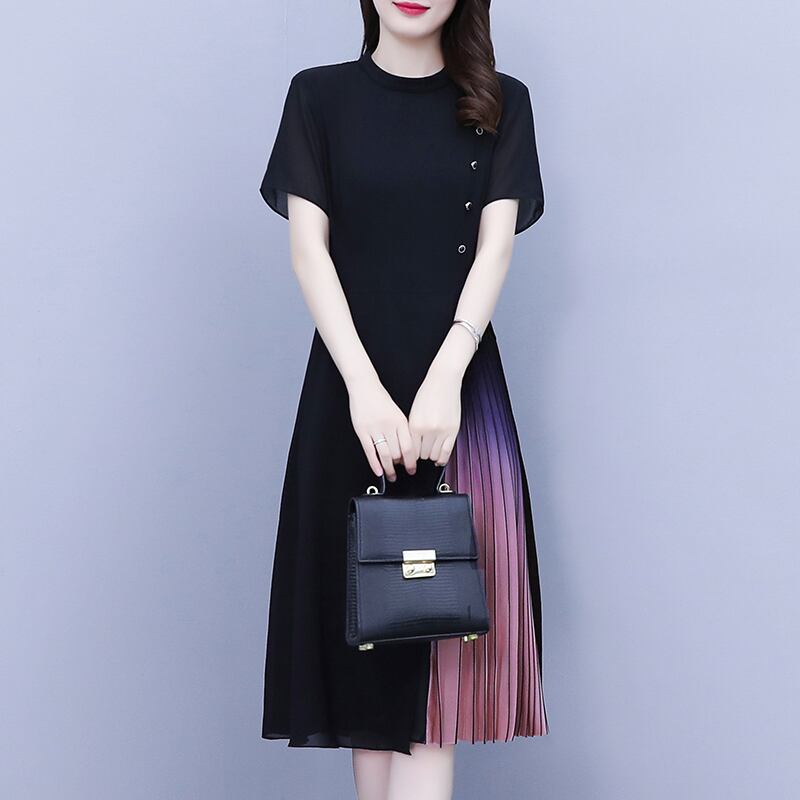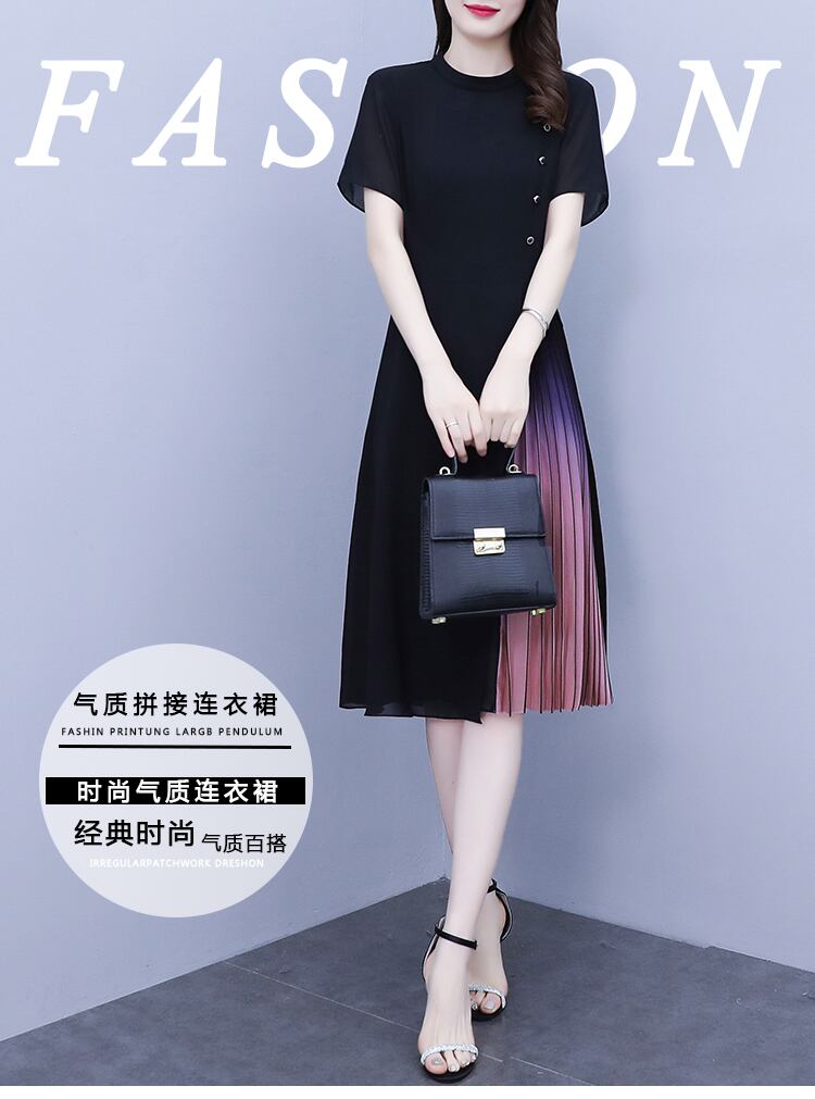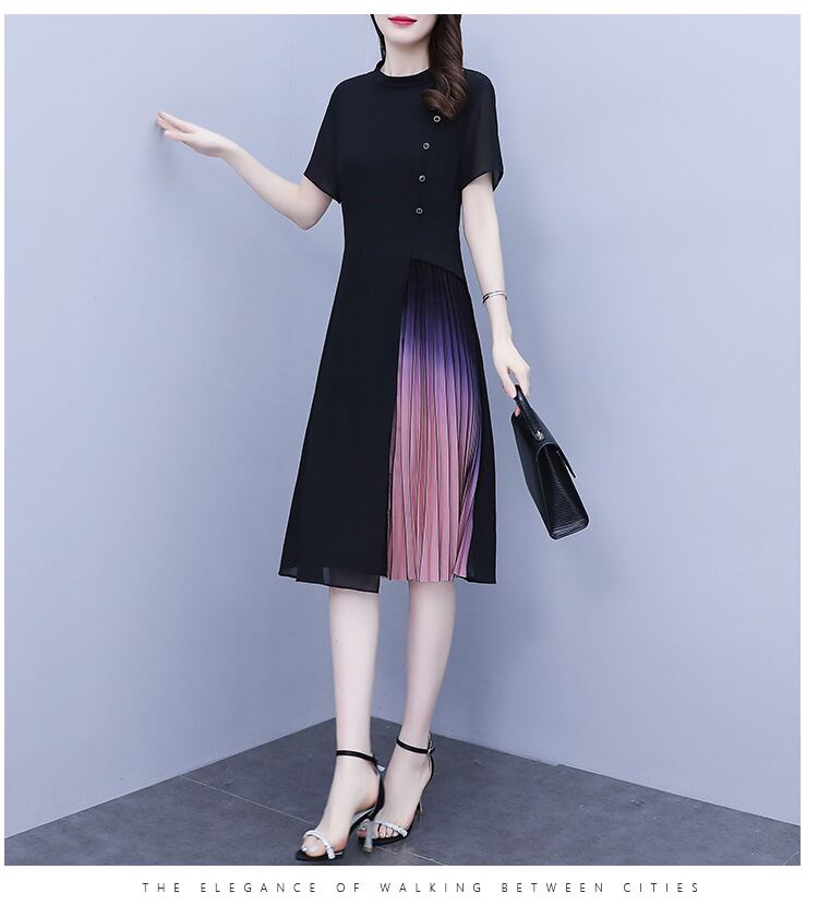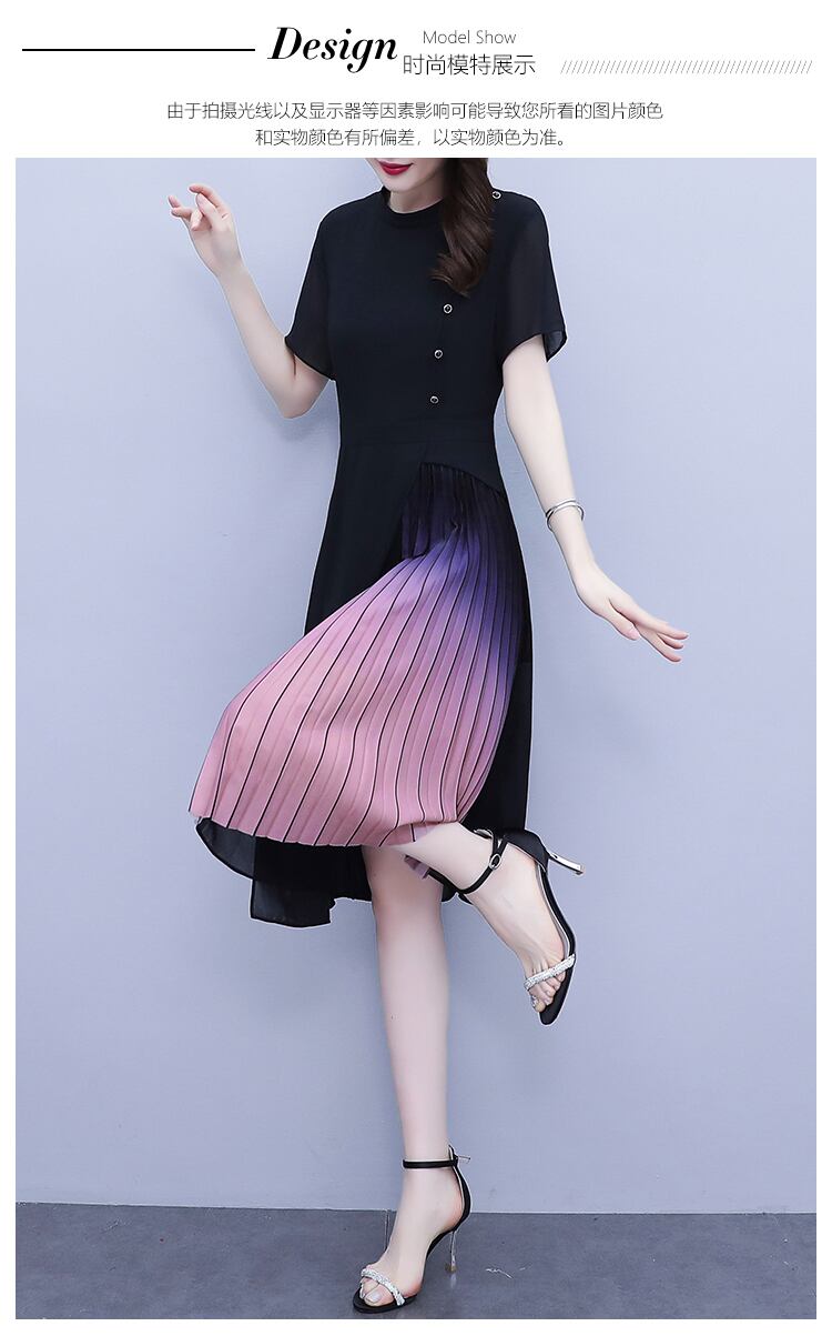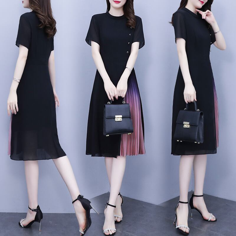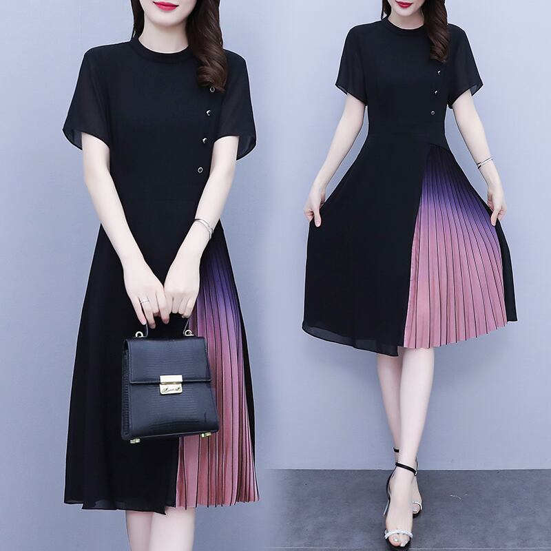 サマーシフォンドレス スタイルウェスト薄手ロングスカート 大きめサイズ 夏物 muto70122687344