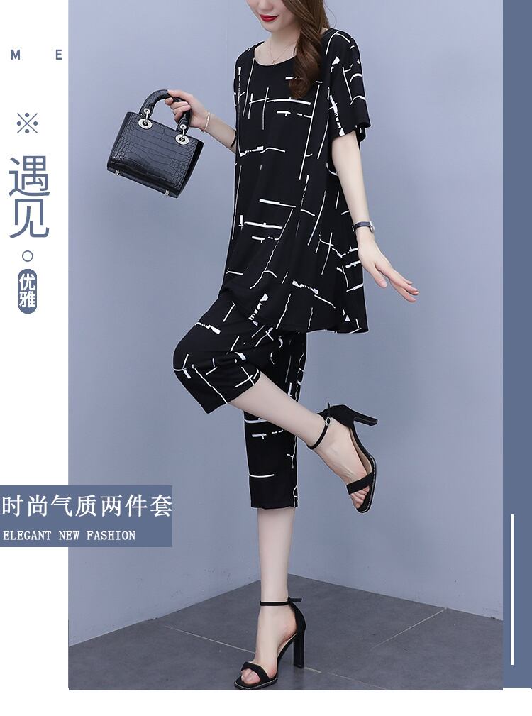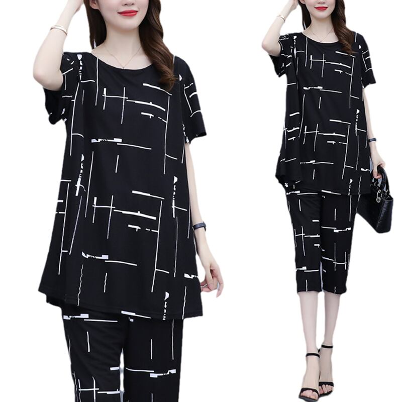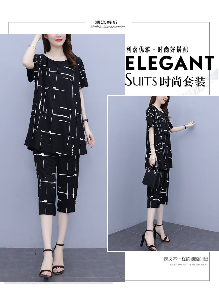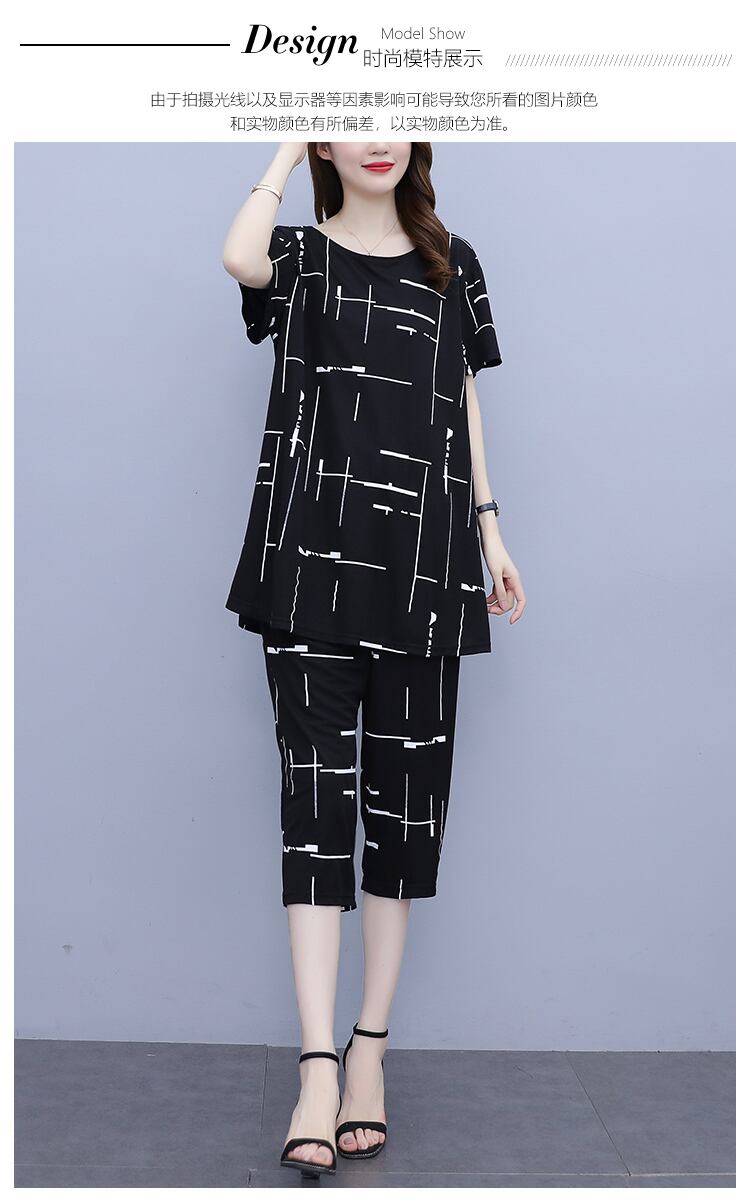 サマーカジュアルルーズ薄手クロップドパンツ セット 大きめサイズ 夏物 muto74803809517