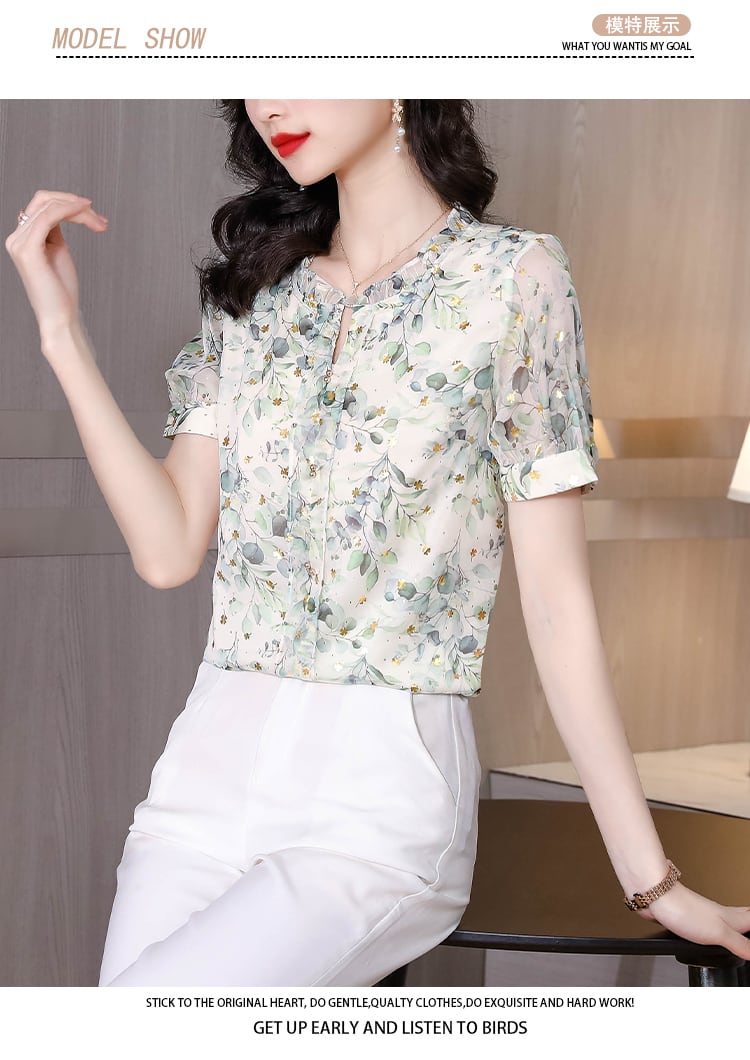 サマーフローラルシフォンシャツ 薄手トップス 大きめサイズ 夏物 花柄 muto77890923743