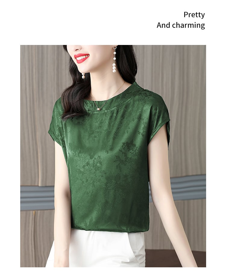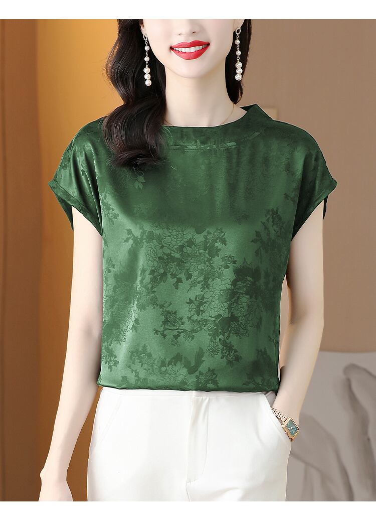 ジャカードトップス Tシャツ シャツ サマーサテン薄手 大きめサイズ 夏物 muto29301544048