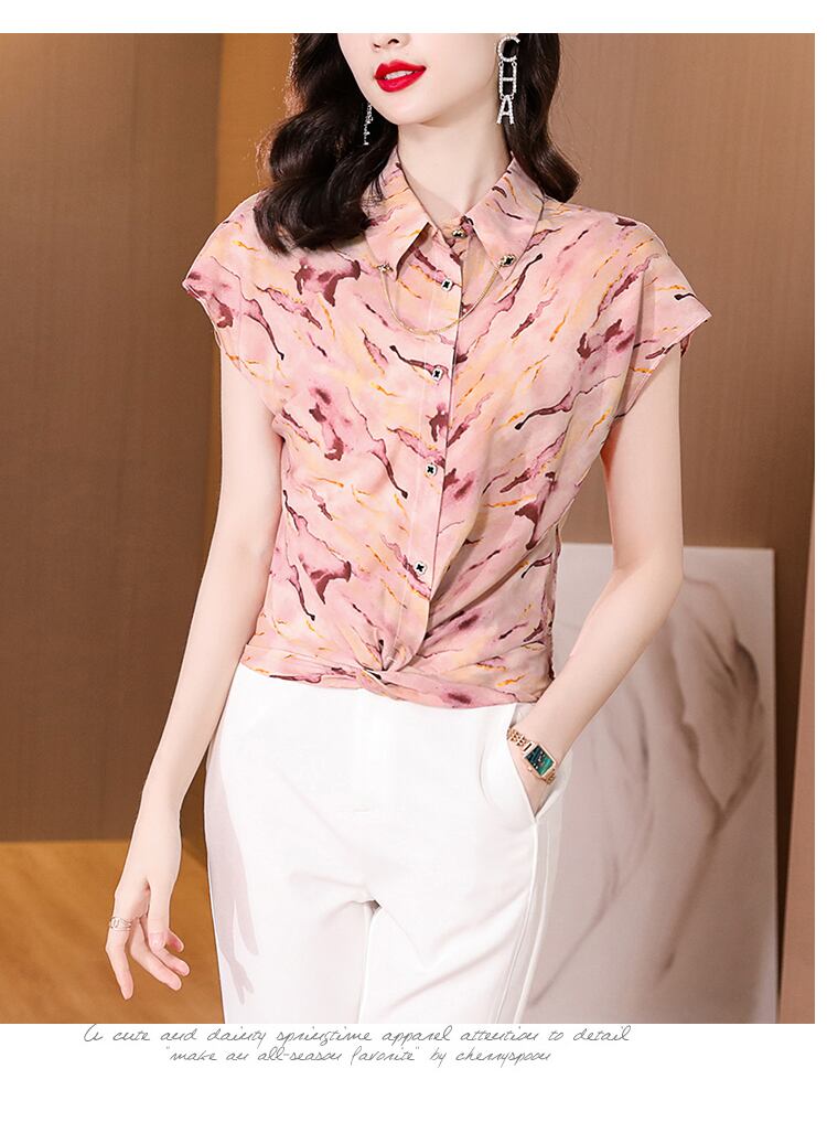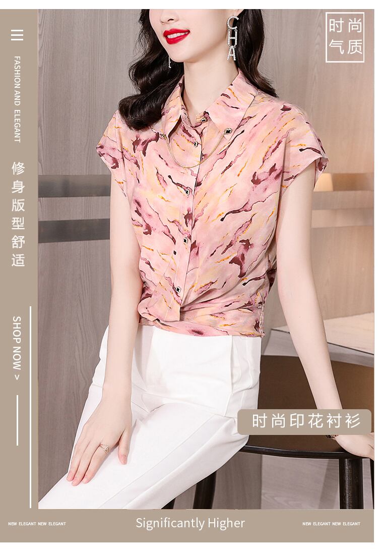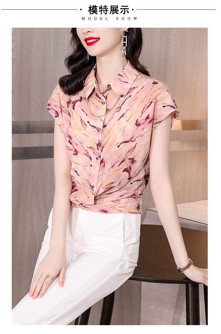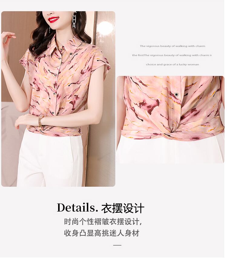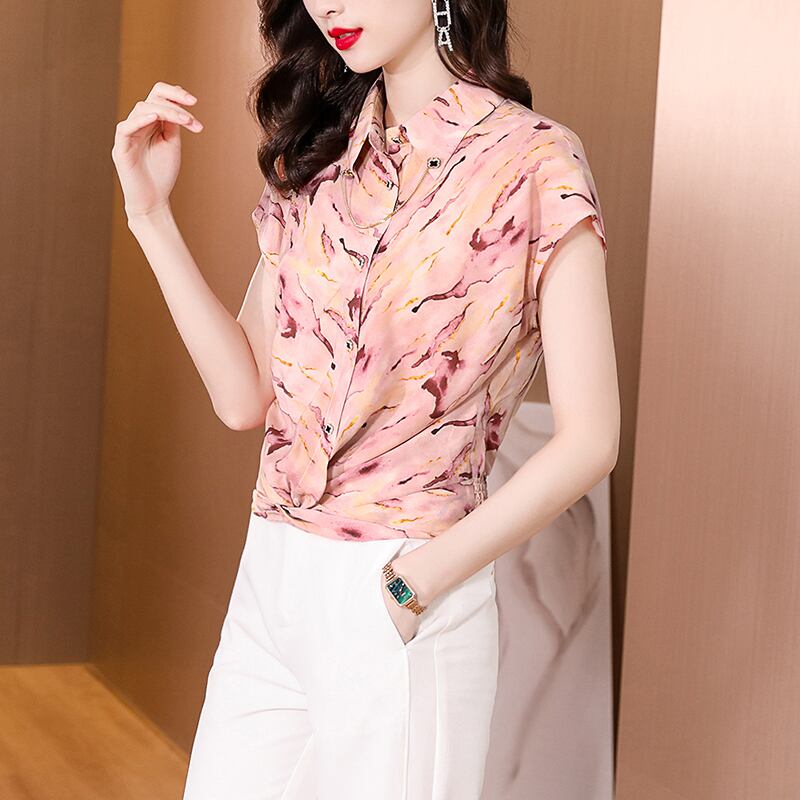 フローラルシフォンシャツ ショートサマースタイルウェスト薄手トップス 大きめサイズ 夏物 花柄 muto97300743442
