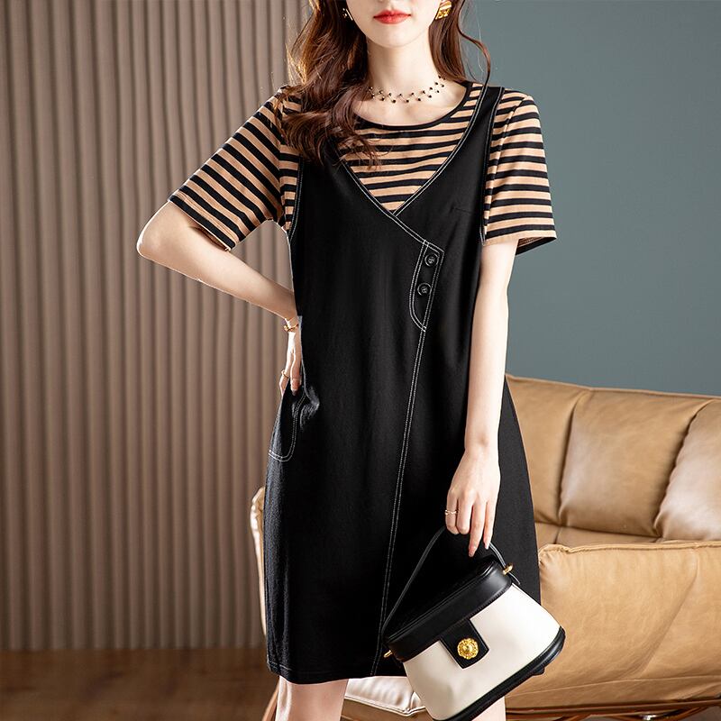 ストライプスカート サマースリムドレス 大きめサイズ 夏物 muto89616427224