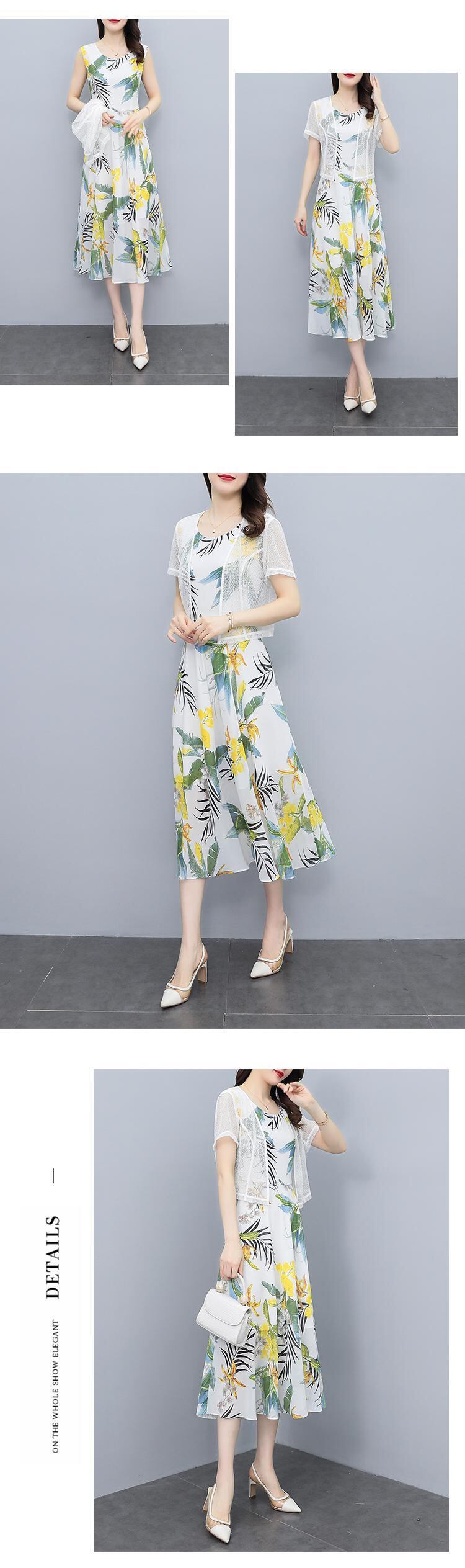 ドレス セット サマーシフォンプリントスカート シャツ 大きめサイズ 夏物 muto80623476169