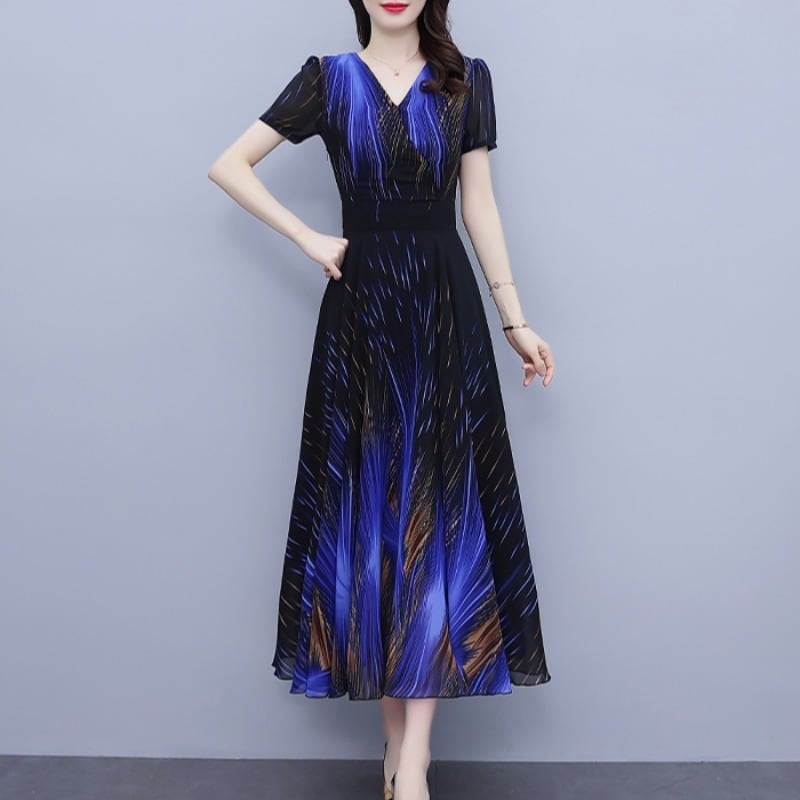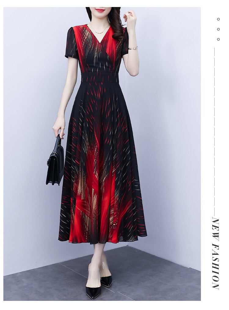 シフォンドレス サマーVネックプリント柄スカート 大きめサイズ 夏物 ビーチ muto20433030277