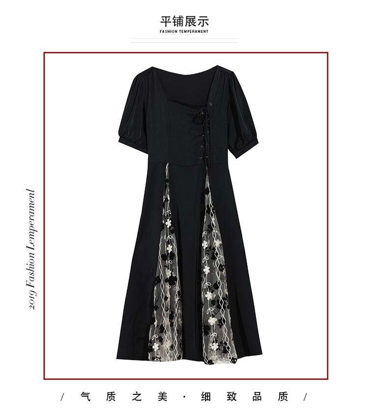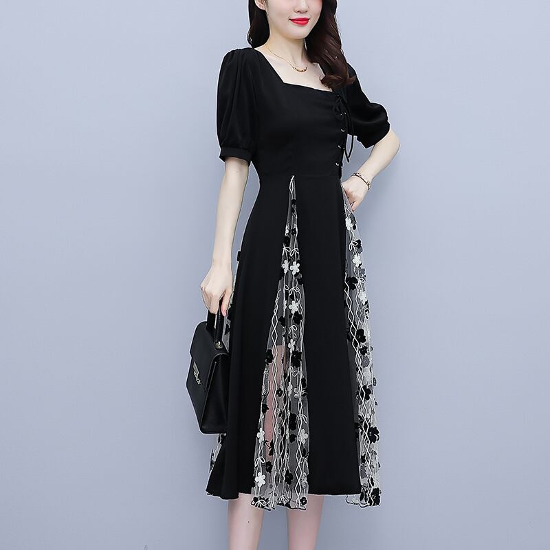 ドレス サマーメッシュロングスカート 大きめサイズ 夏物 スクウェア ステッチ muto2393639289