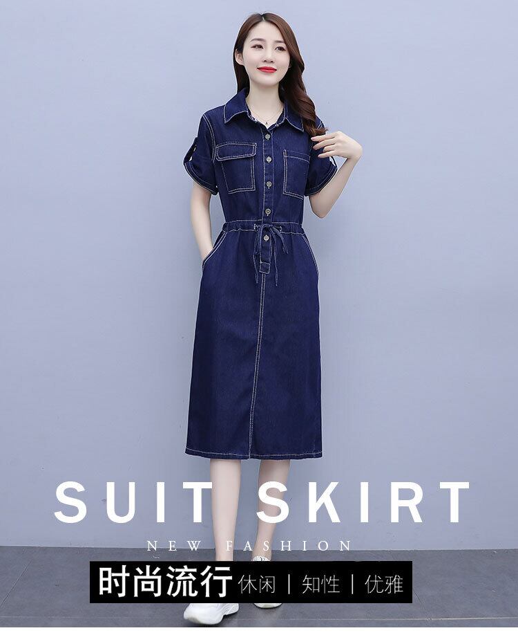 ブルードレス サマーカジュアルスタイルストレッチウェスト薄手シャツ スカート ロング エラスティック 伸縮 大きめサイズ 夏物 muto39659064029