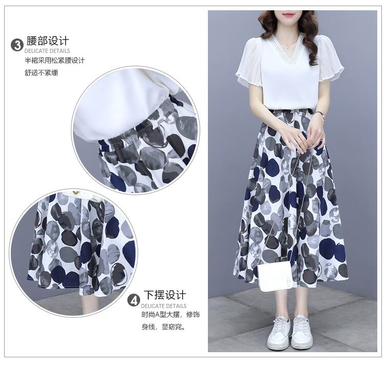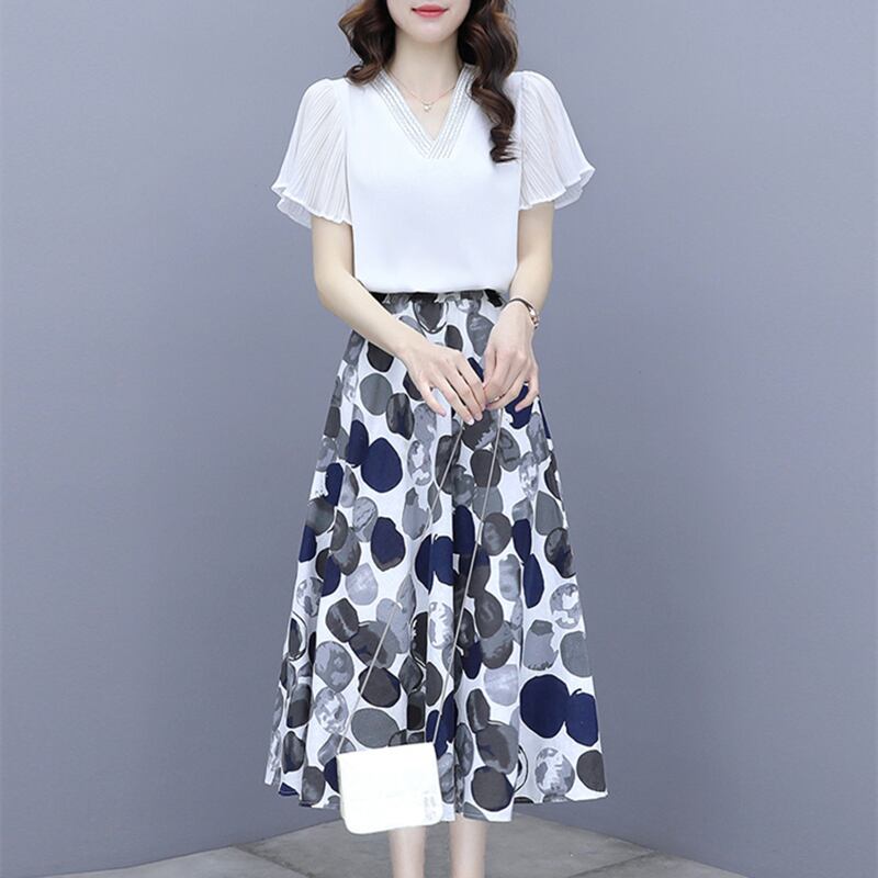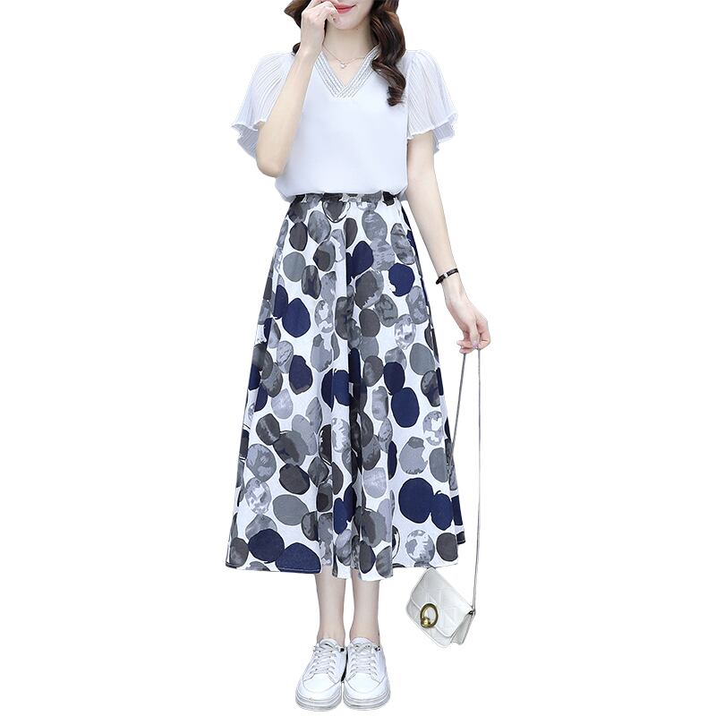 水玉プリント柄スカート サマーVネックトップス セット 大きめサイズ 夏物 muto93354588120