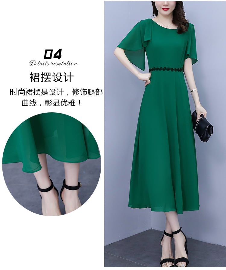 グリーンシフォンドレス サマースタイルロングスカート 大きめサイズ 夏物 muto29157376079