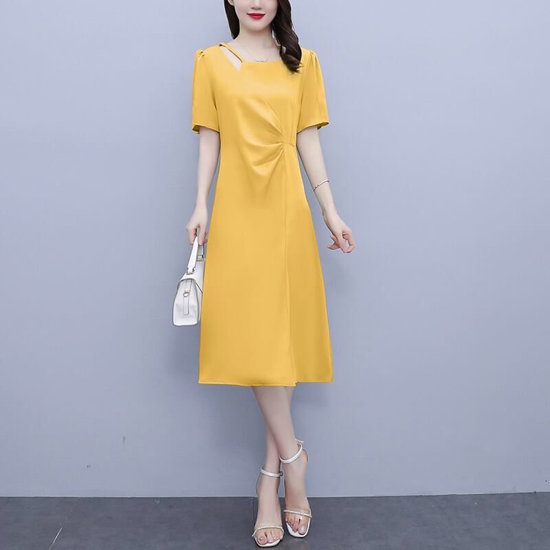 スタンダードドレス サマースカート ウェスト レトロ 大きめサイズ 夏物 muto82851812698