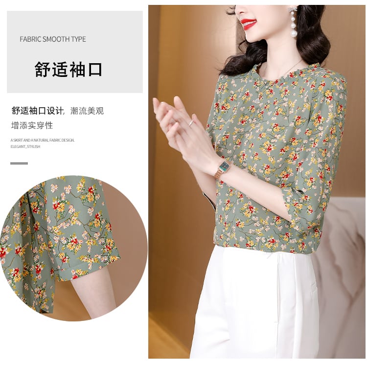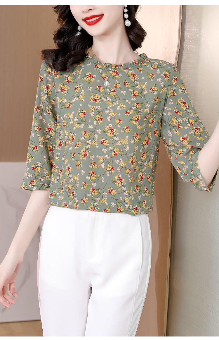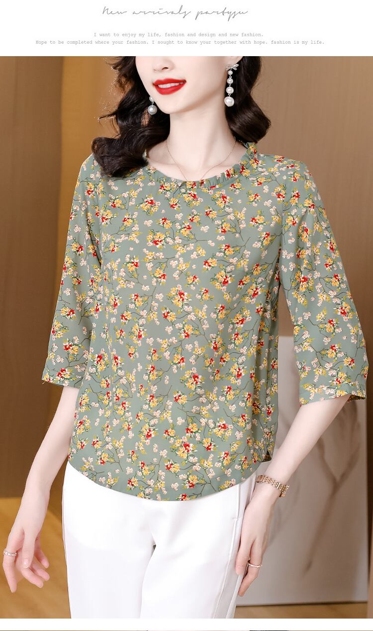 フローラルシフォンシャツ サマースタイル薄手ルーズトップス 大きめサイズ 夏物 花柄 muto90906708243