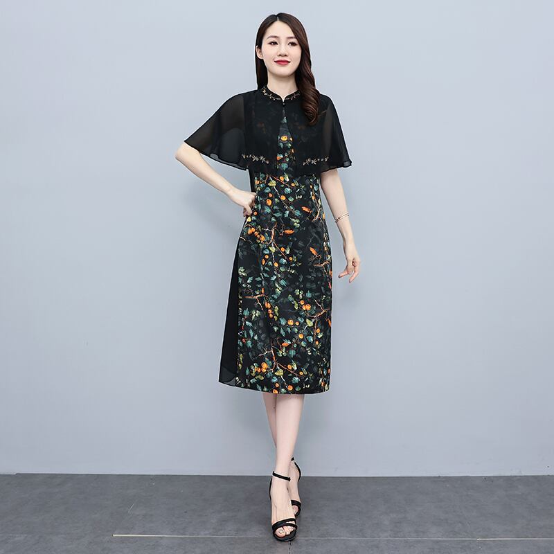 シフォンドレス サマー刺繍スカート 大きめサイズ 夏物 シルク ステッチ muto85046899386