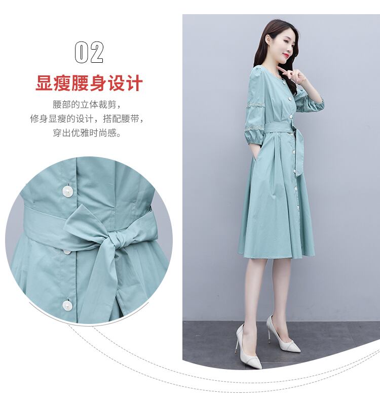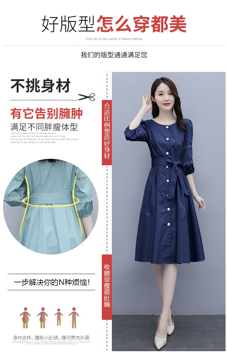 サマースカート ウェスト薄手スリーブドレス ランタンスリーブ 大きめサイズ 夏物 muto34067105873