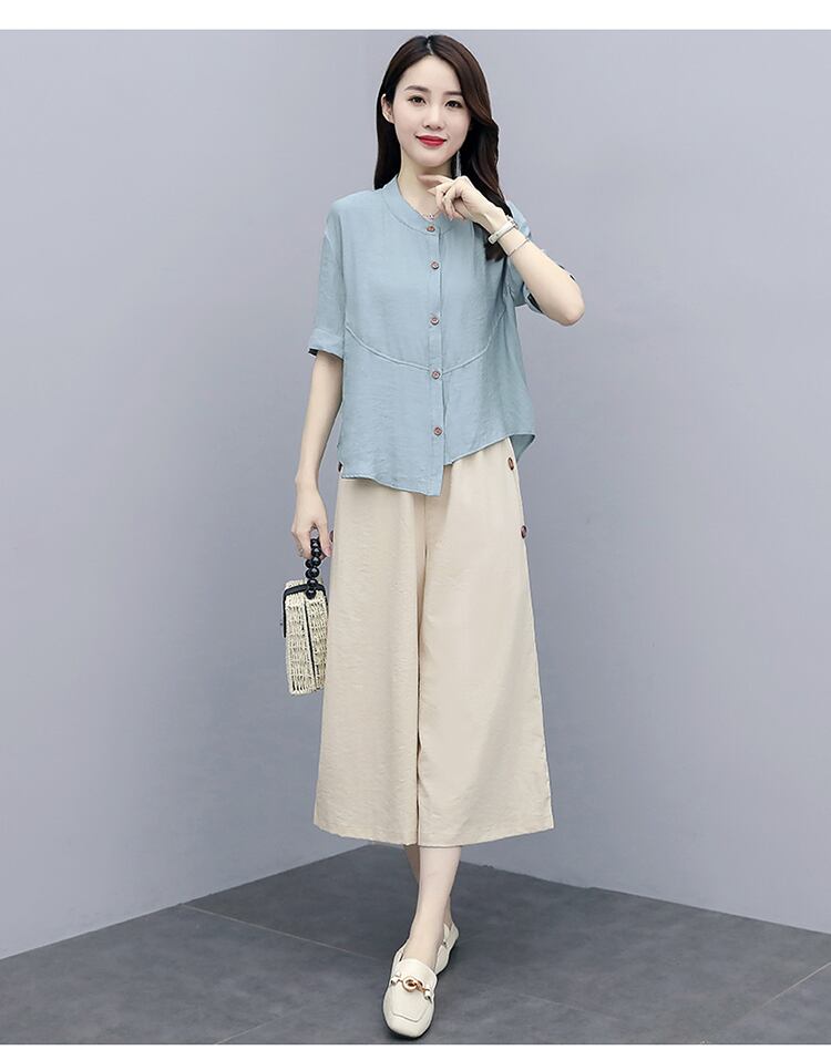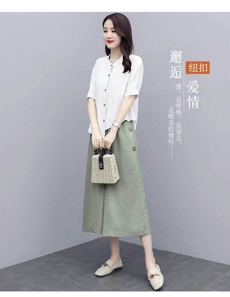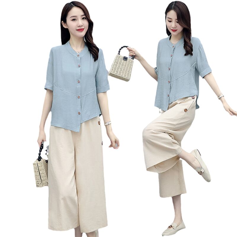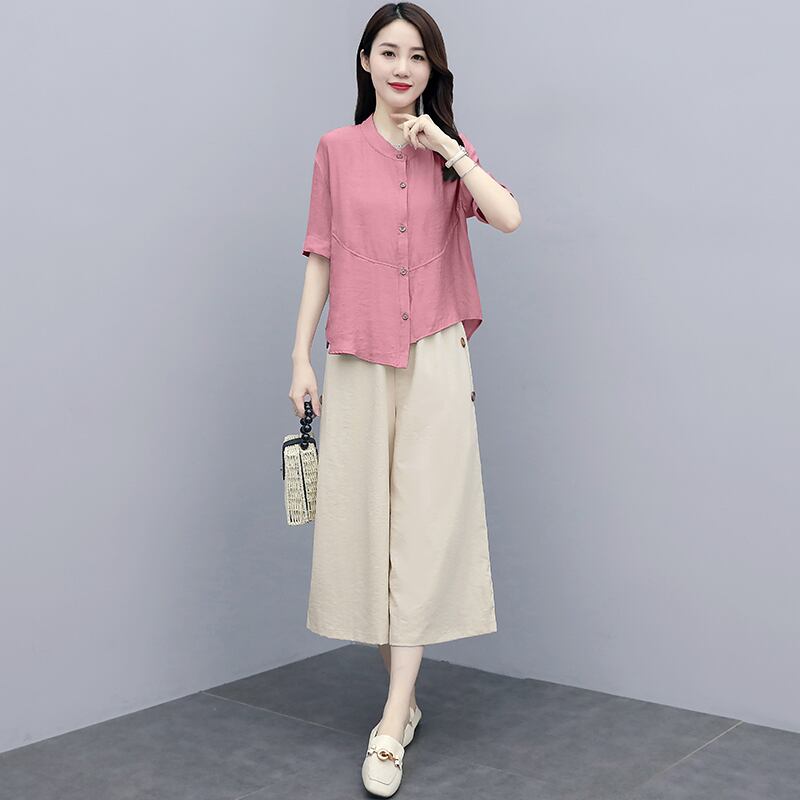 クロップドスタイルサマー薄手パンツ セット コットン 大きめサイズ 夏物 muto76756984783