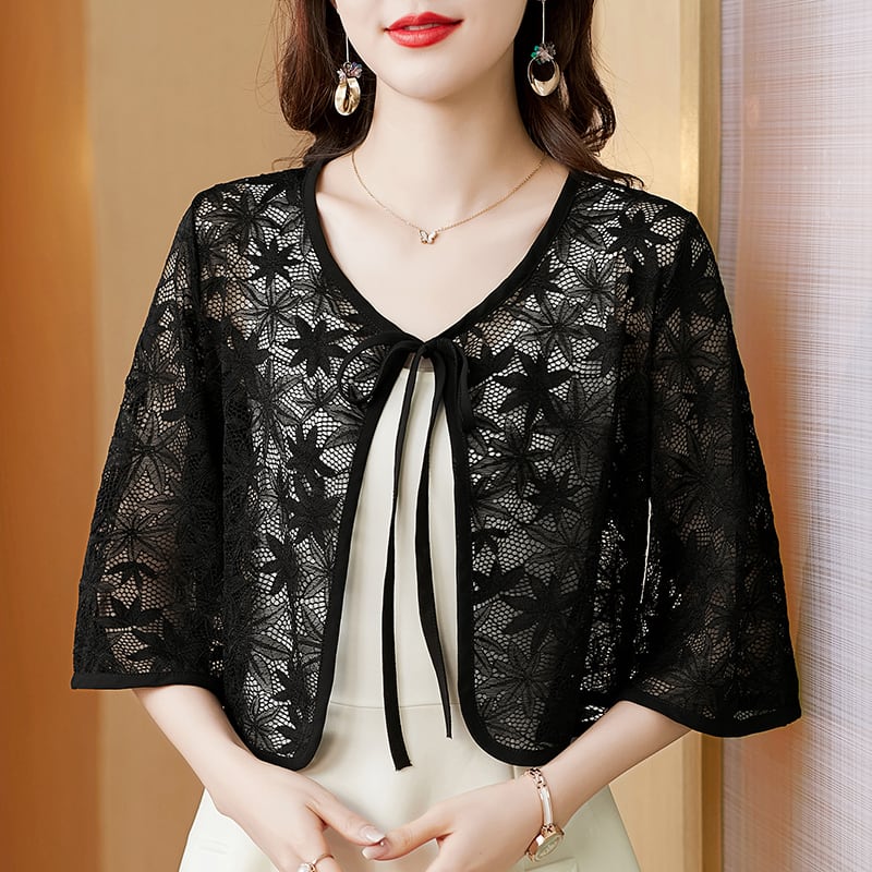 カーディガンサマースカート ニットトップス ショートコート 薄手レース 大きめサイズ 夏物 muto1073781756