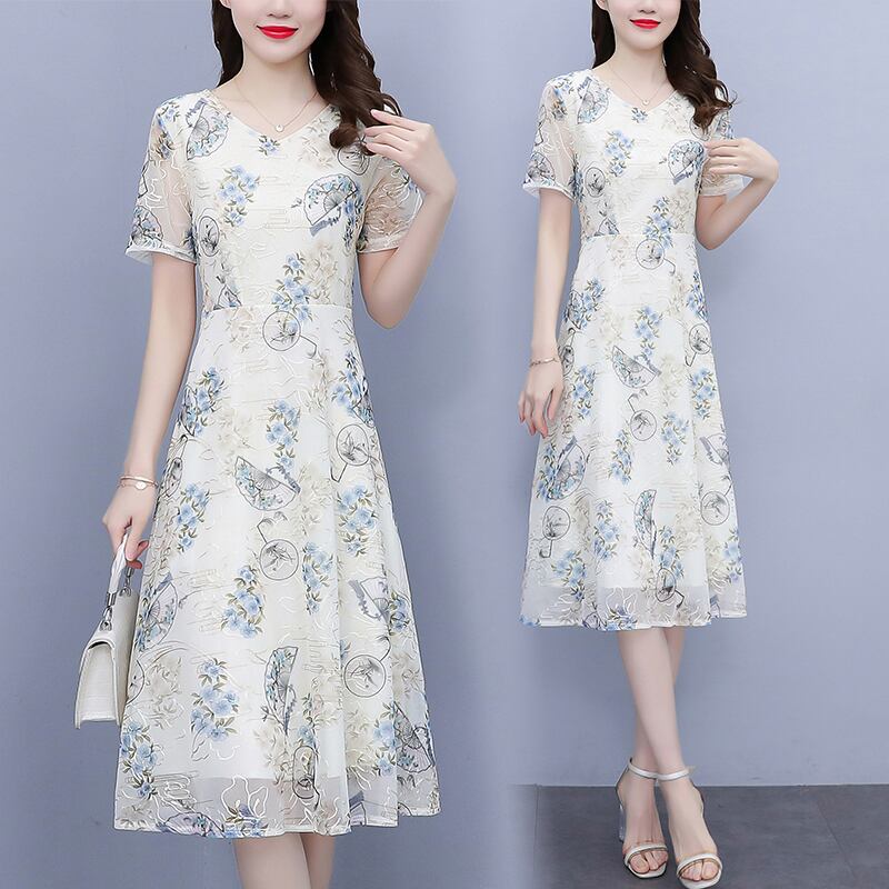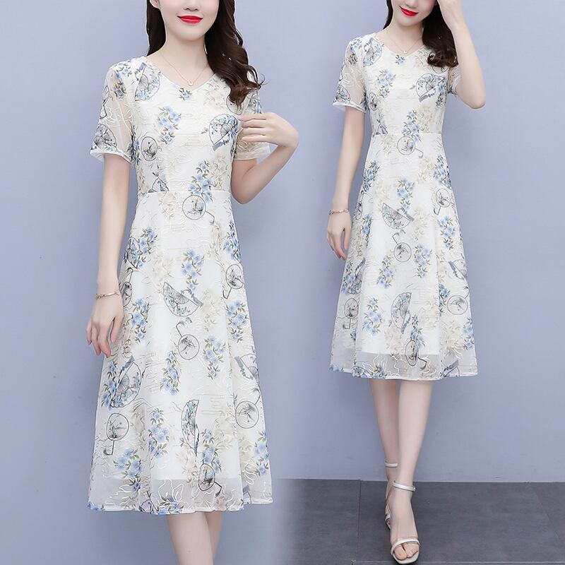シフォンドレス サマーフローラルスカート ウェスト薄手 大きめサイズ 夏物 花柄 muto69989840754