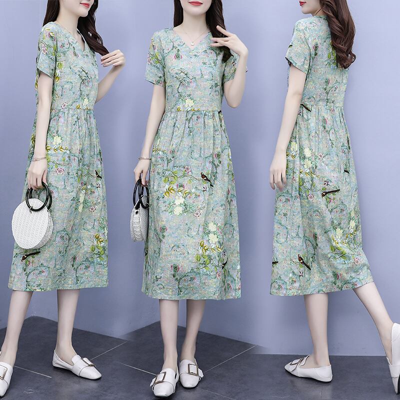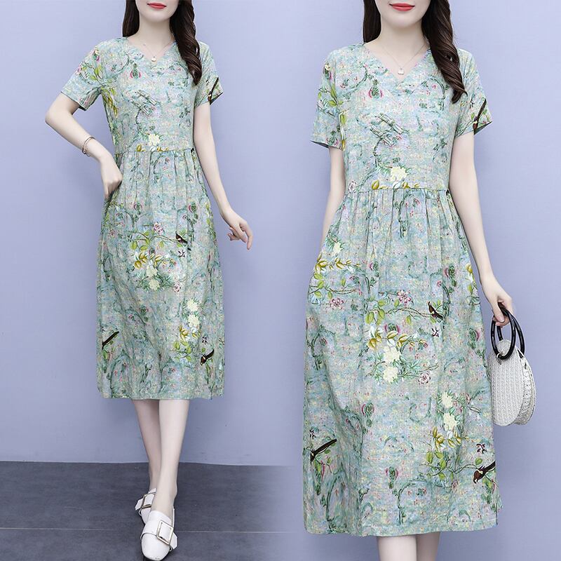 フローラルドレス サマーウェスト薄手スカート コットン 大きめサイズ 夏物 花柄 muto37692314843