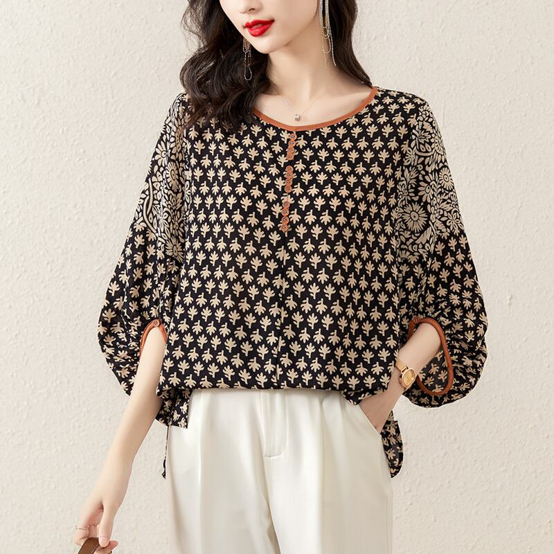 フローラルシフォンシャツ サマートップス 大きめサイズ 夏物 花柄 muto94944832040
