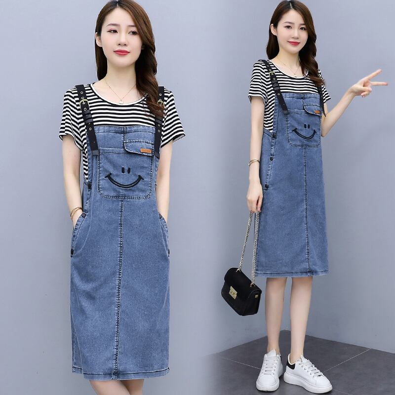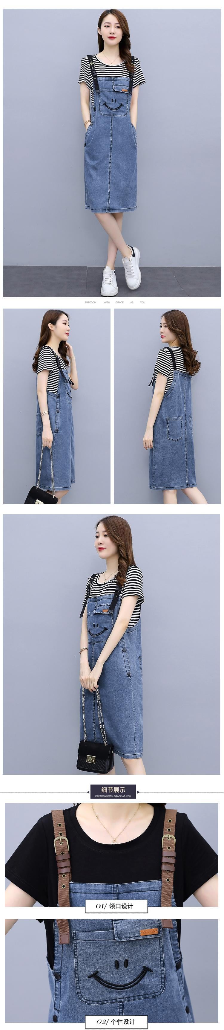 色:ストライプdT-shirt+ストラップスカート,ブラックT-shirt+suspenderスカート