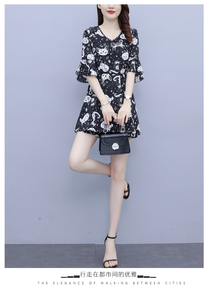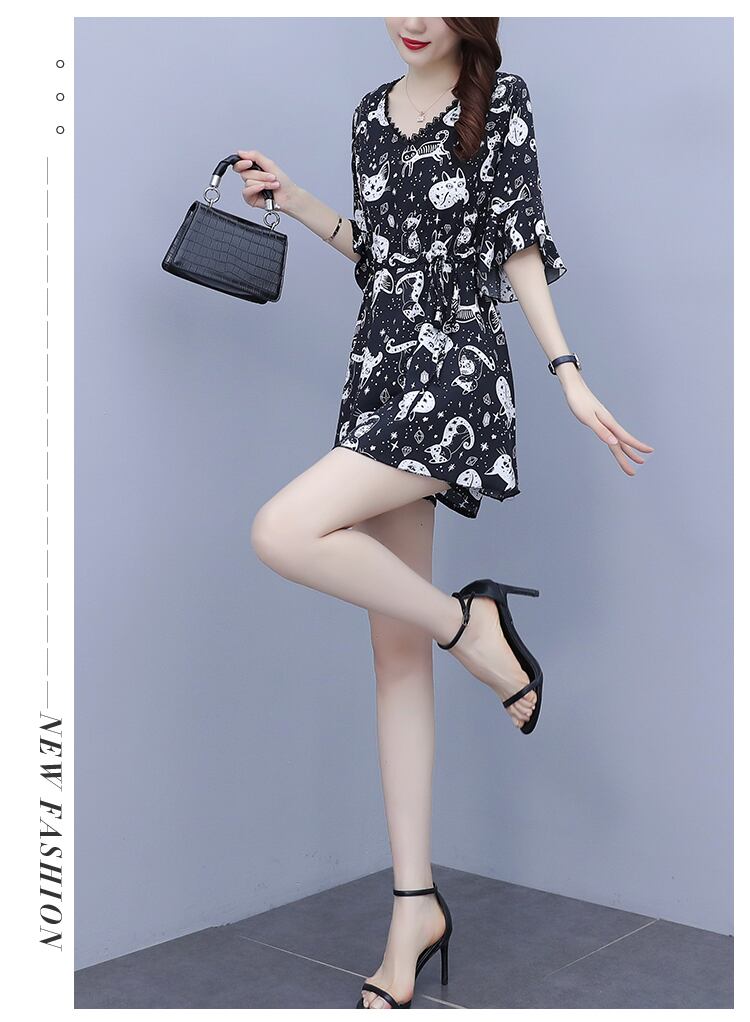 サマーパターンフローラルウェストルーズ薄手スリーブシフォンショーツ 大きめサイズ 夏物 ブルマー 花柄 muto21910821374