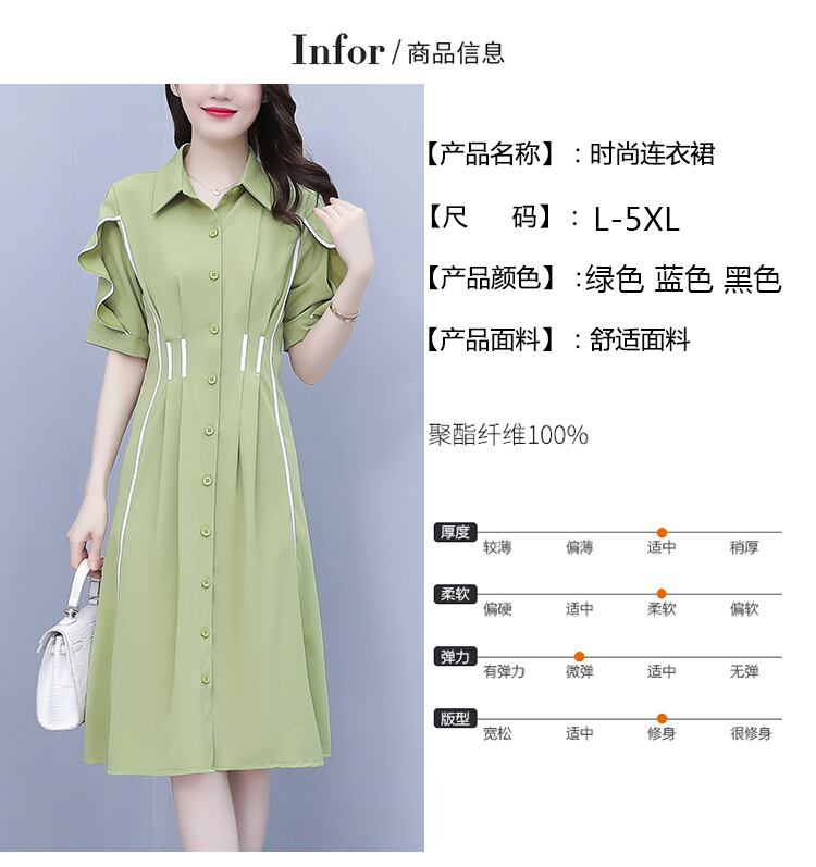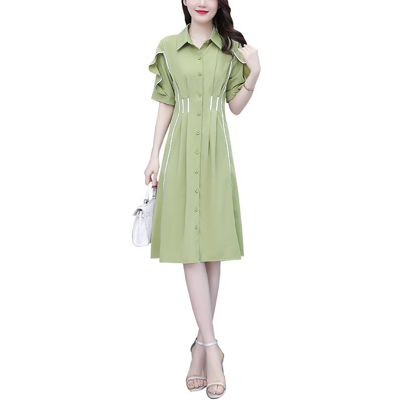 ドレス サマースリムグリーンシャツ スカート 大きめサイズ 夏物 muto2357535044