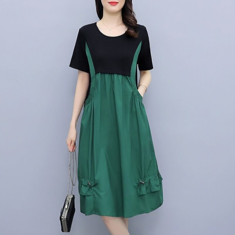 レッド薄手スカート サマーカジュアルドレス レディース 大きめサイズ 夏物 muto31277414699