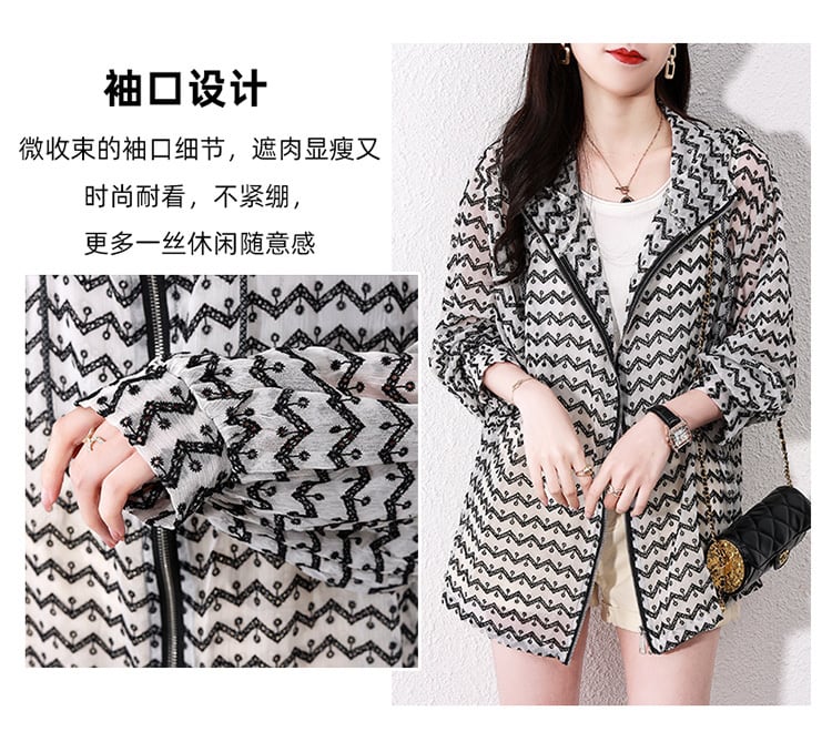 サマー薄手フードストライプコート 大きめサイズ 夏物 muto39133675495