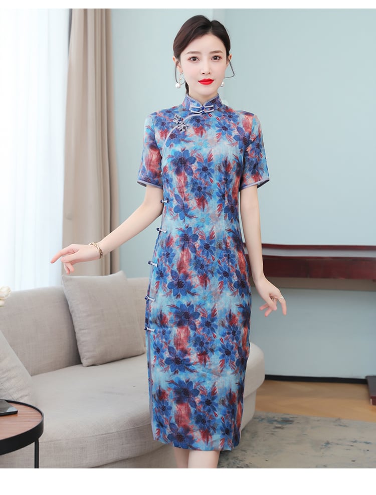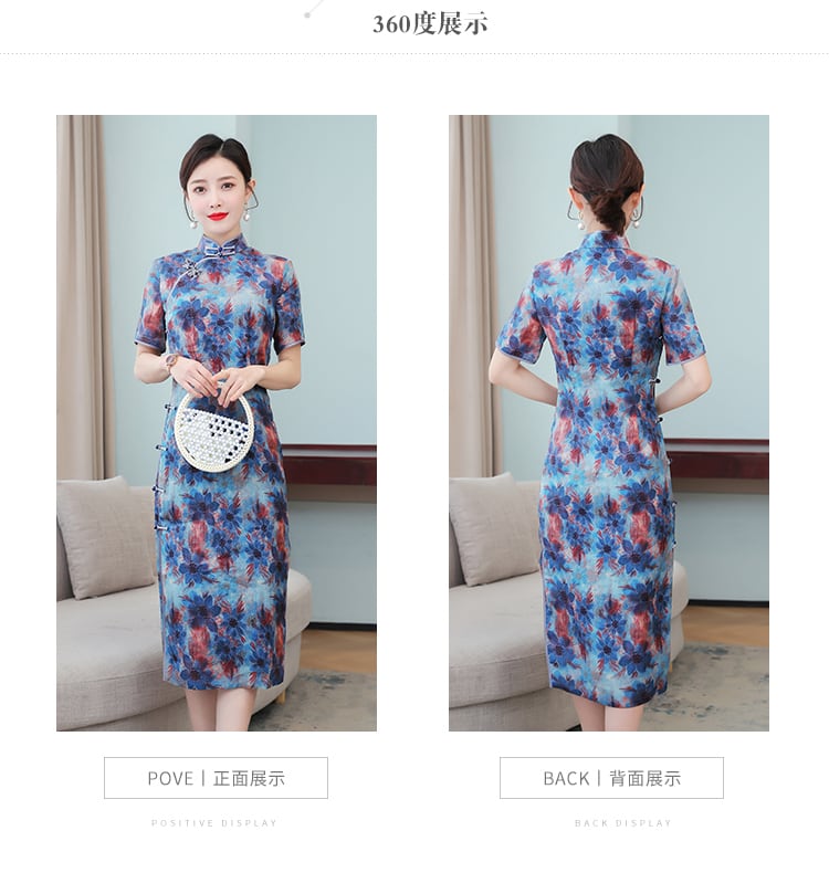 スタンダードボタンスタイルサマー薄手プリントドレス レトロ 大きめサイズ 夏物 muto13710463657