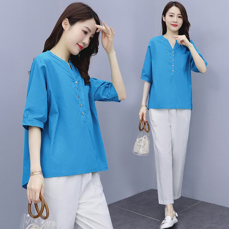 薄手サマースタイルルーズパンツ トップス セット コットン 大きめサイズ 夏物 muto81174000998
