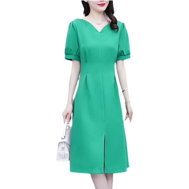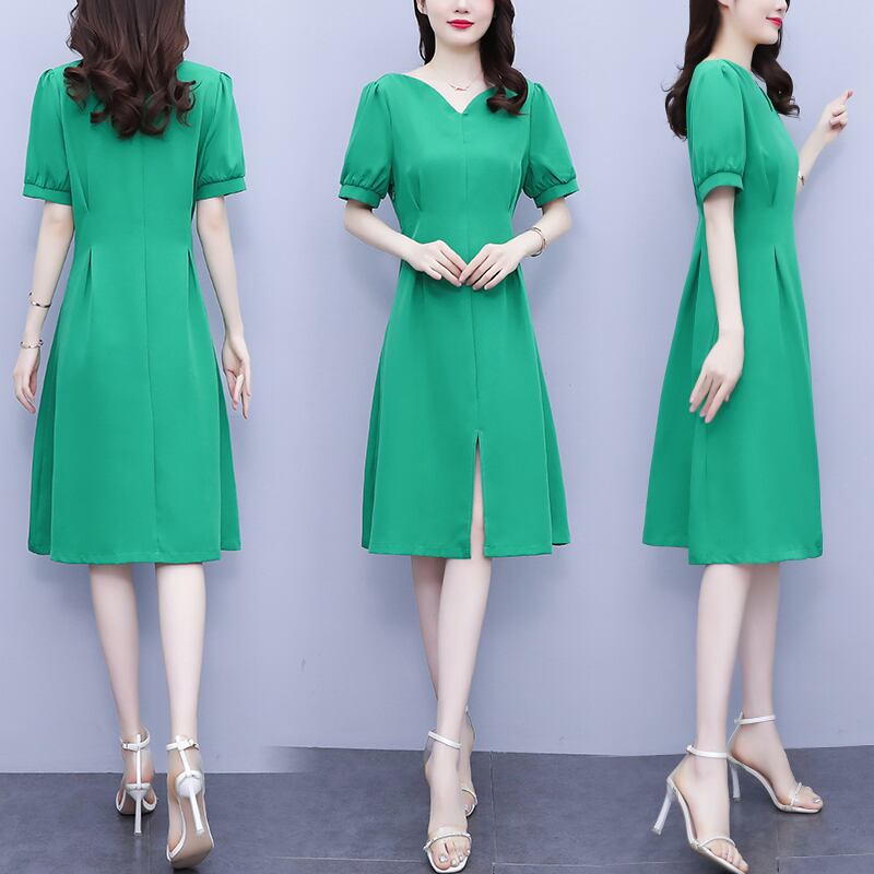 Vネックドレス サマー薄手スカート 大きめサイズ 夏物 muto51161778377