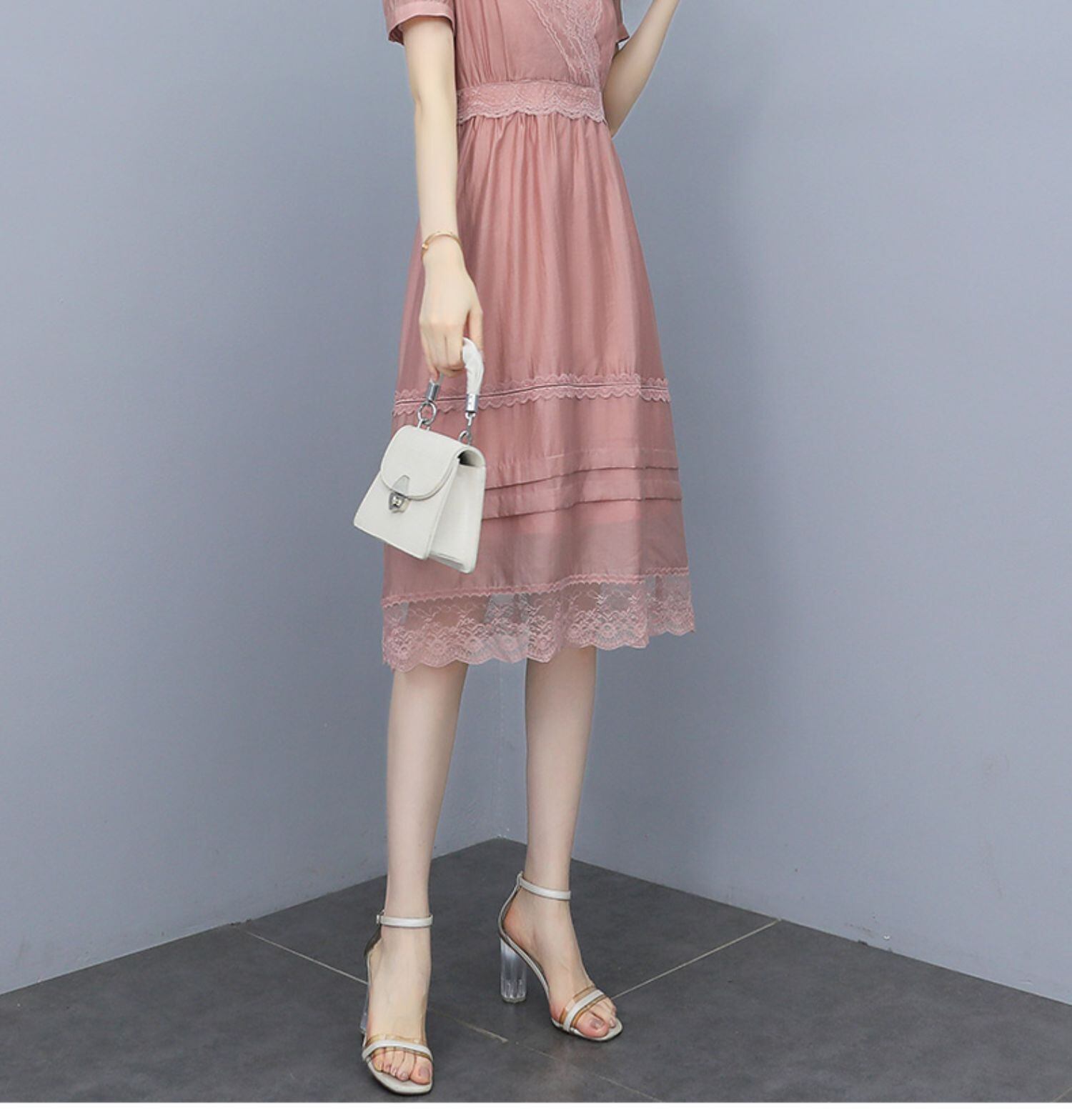 Vネックスカート サマードレス 薄手 大きめサイズ 夏物 muto98168690318