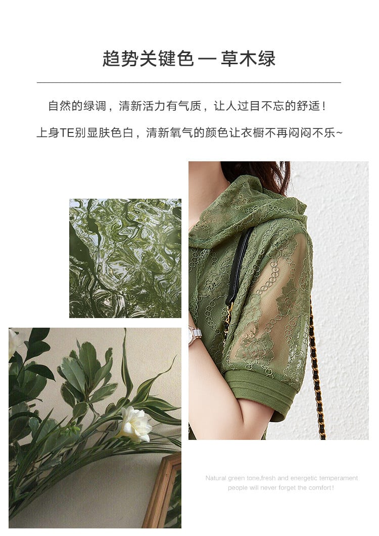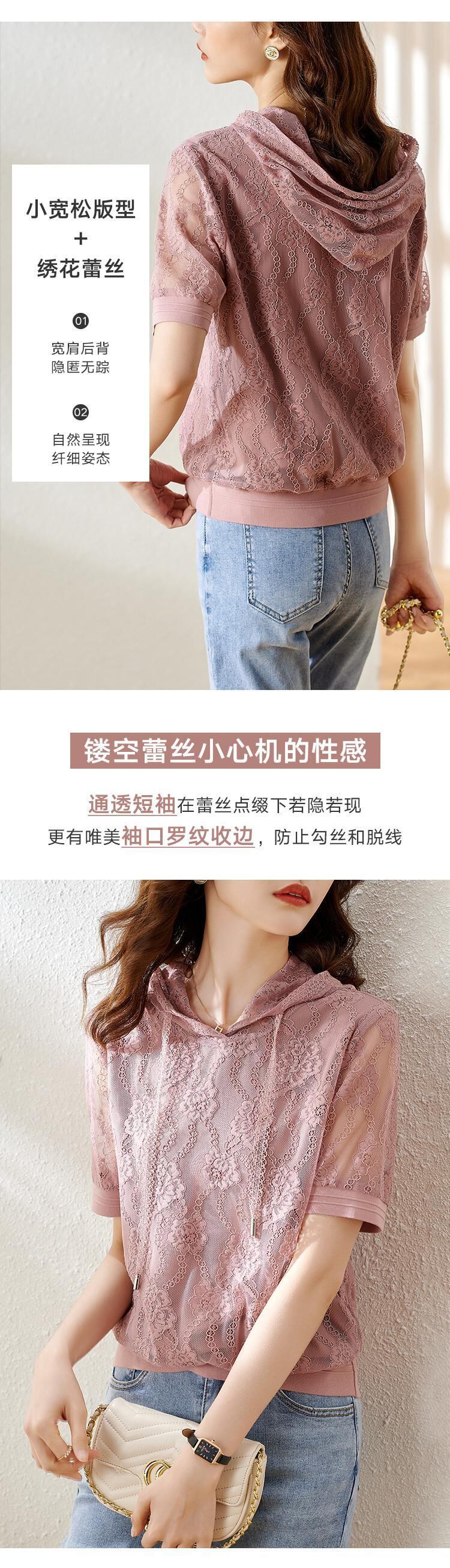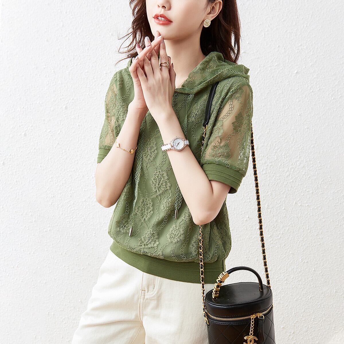 フードレースシャツ 薄手サマートップス 大きめサイズ 夏物 muto78864132489