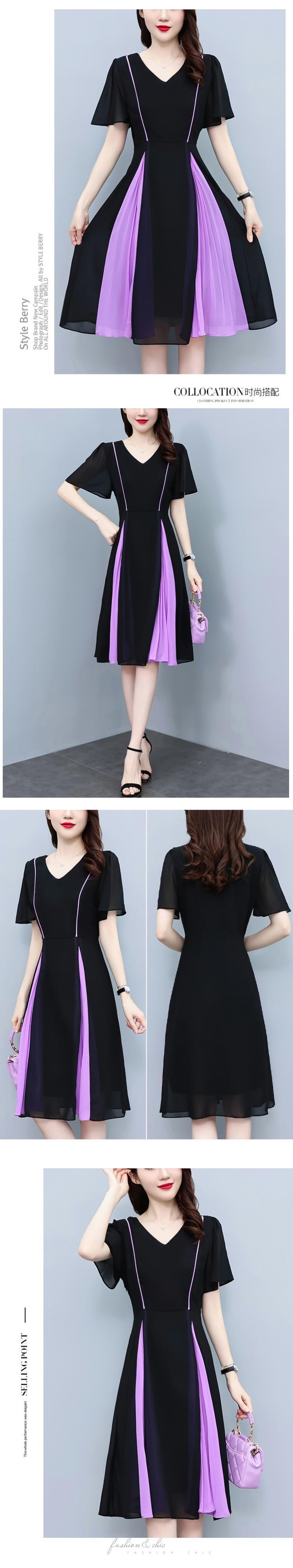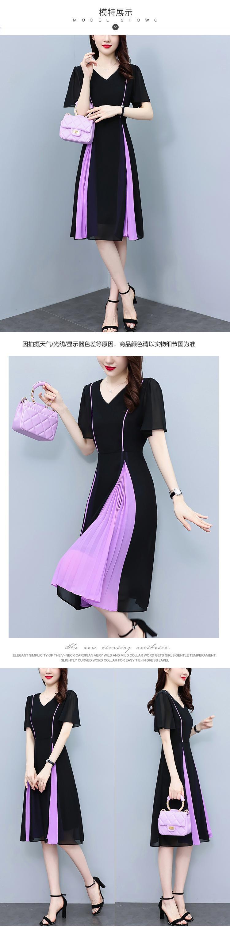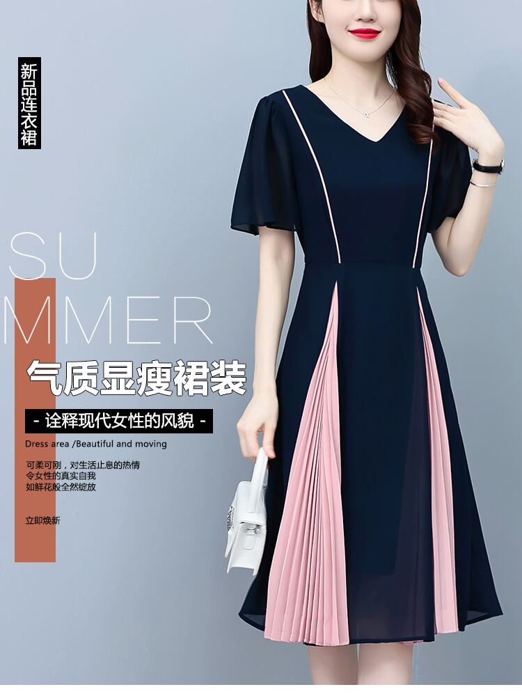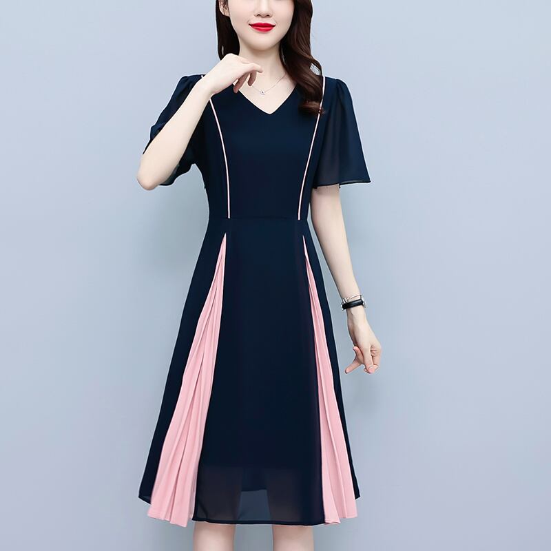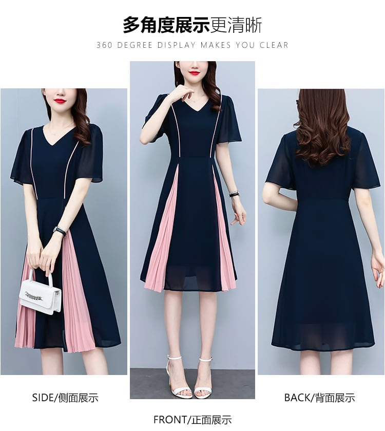 シフォンVネックドレス サマーカラースカート 大きめサイズ 夏物 ステッチ muto24040354501