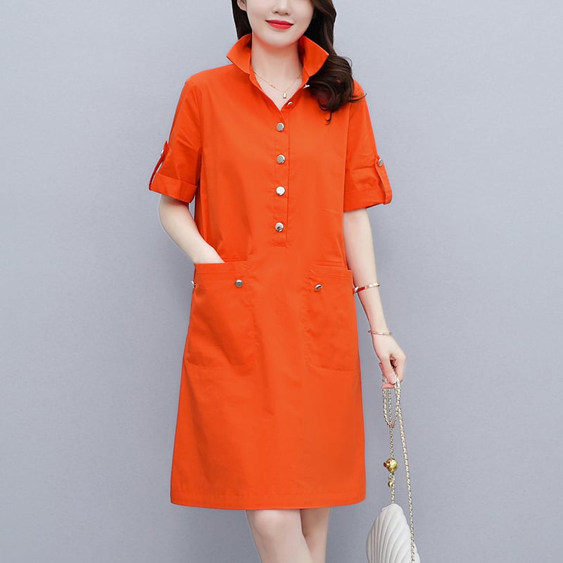 スタンダードシャツ ドレス サマーカジュアルトップス 薄手Aラインスカート レトロ 大きめサイズ 夏物 muto54836276066