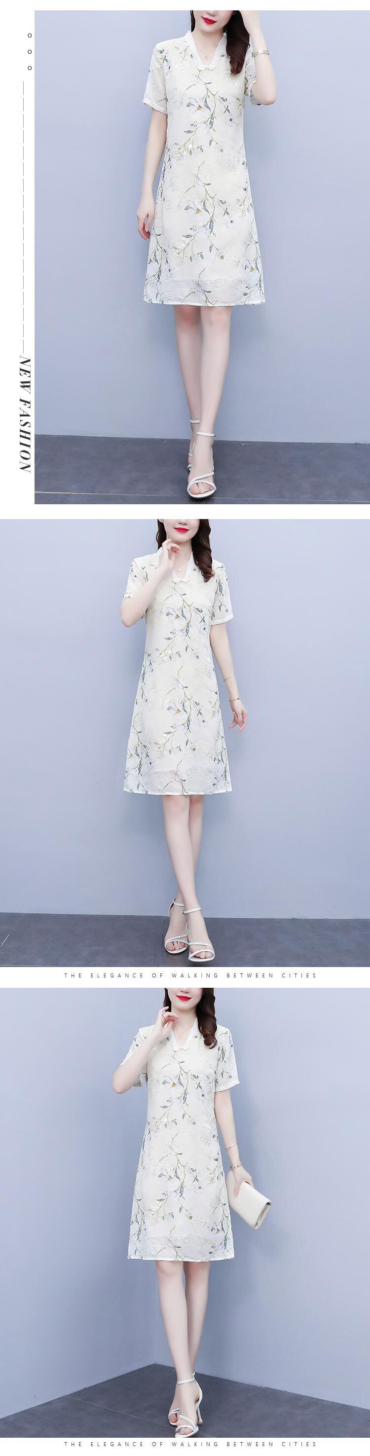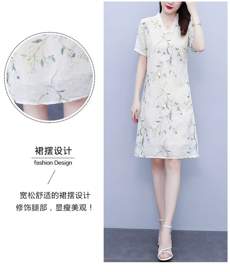 サマー薄手スタイルシフォンドレス レッド 刺繍 大きめサイズ 夏物 muto20965806039