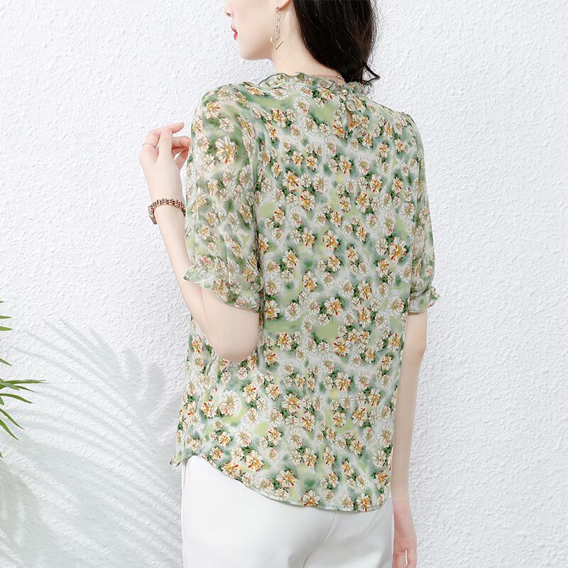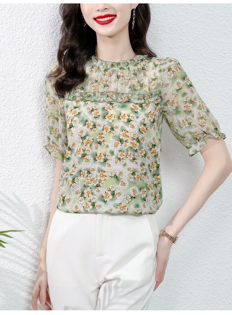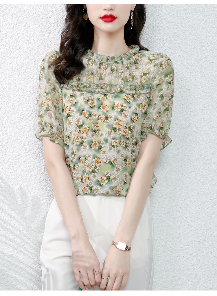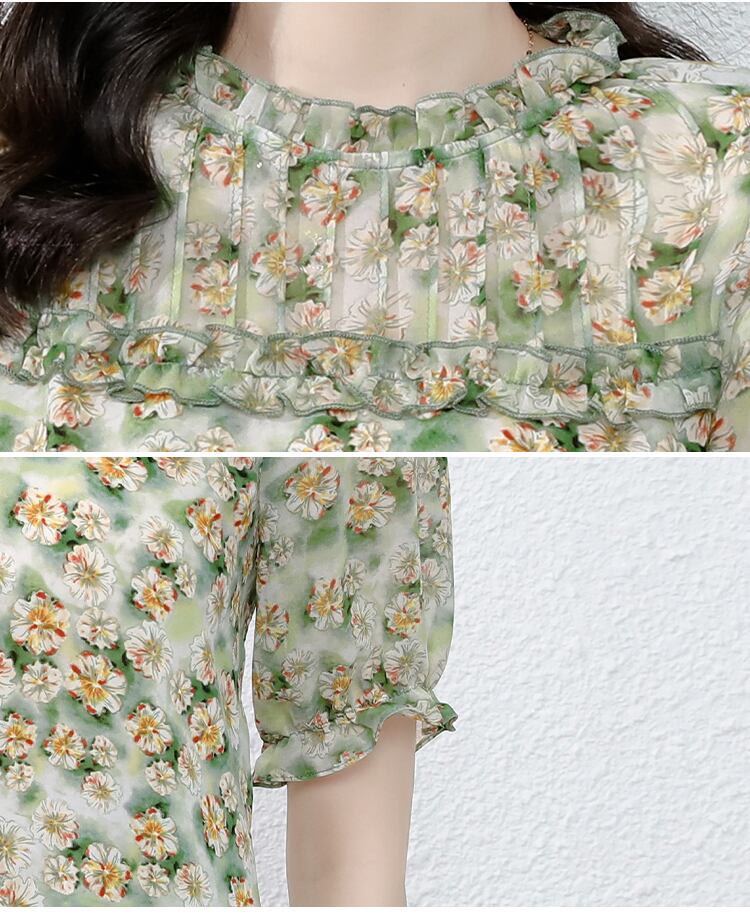 シフォンシャツ フローラルサマードレス トップス 大きめサイズ 夏物 花柄 muto49984482719