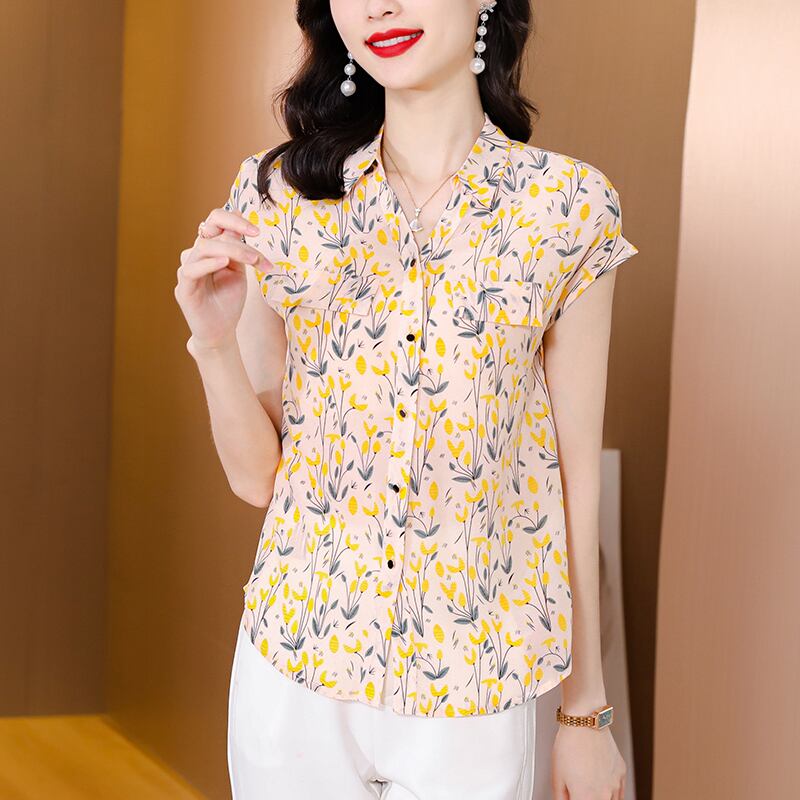 薄手シャツ サマースタイルプリント 大きめサイズ 夏物 シルク muto68420859066