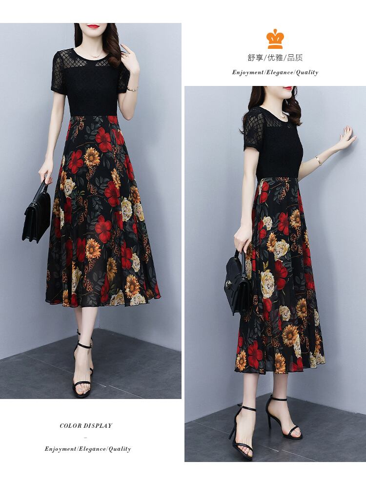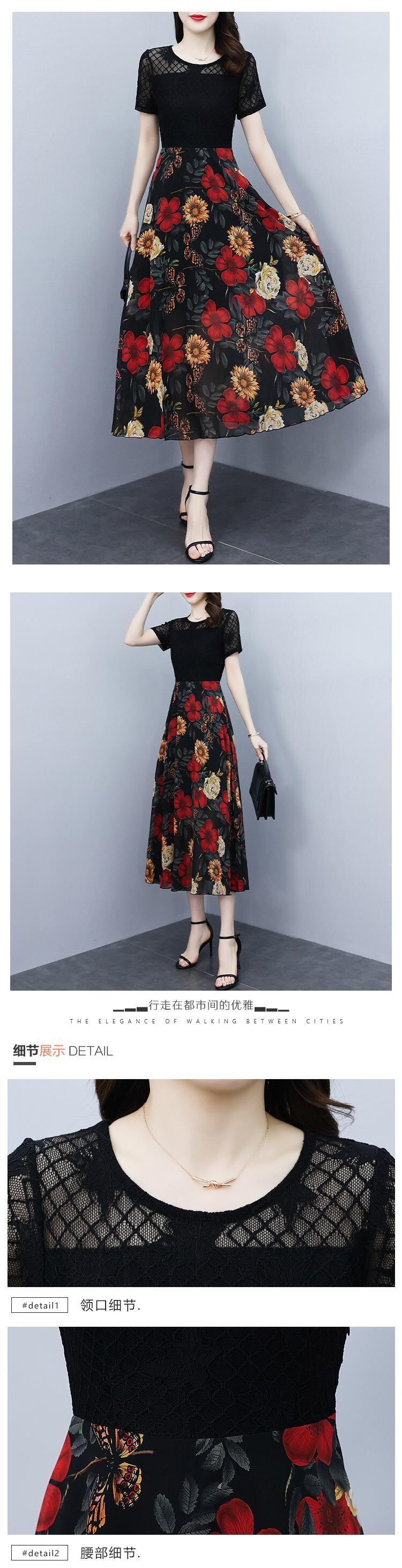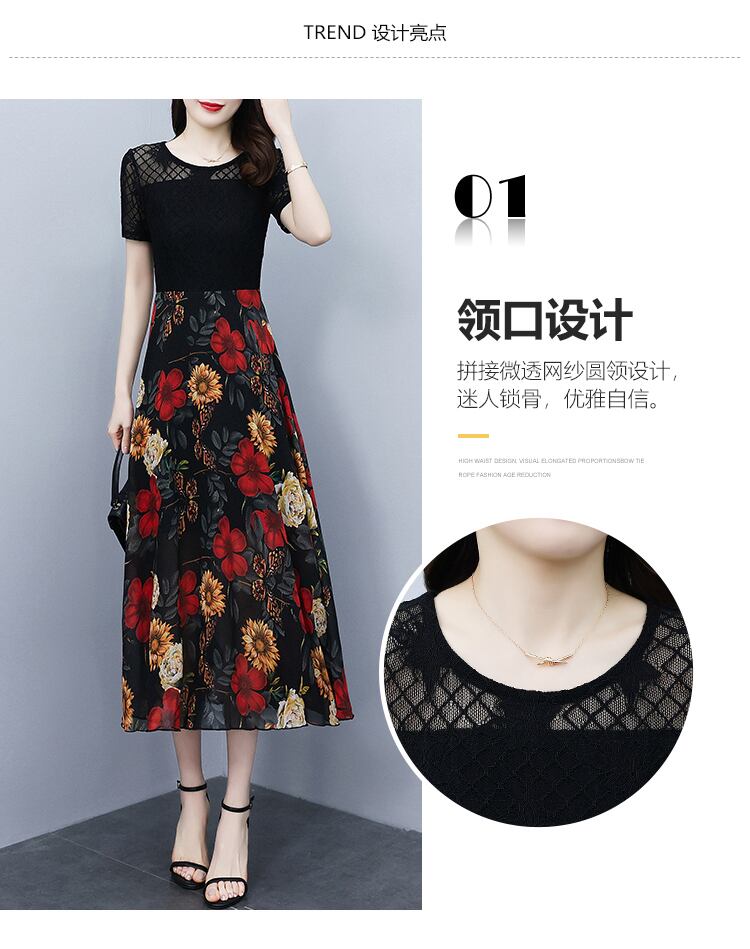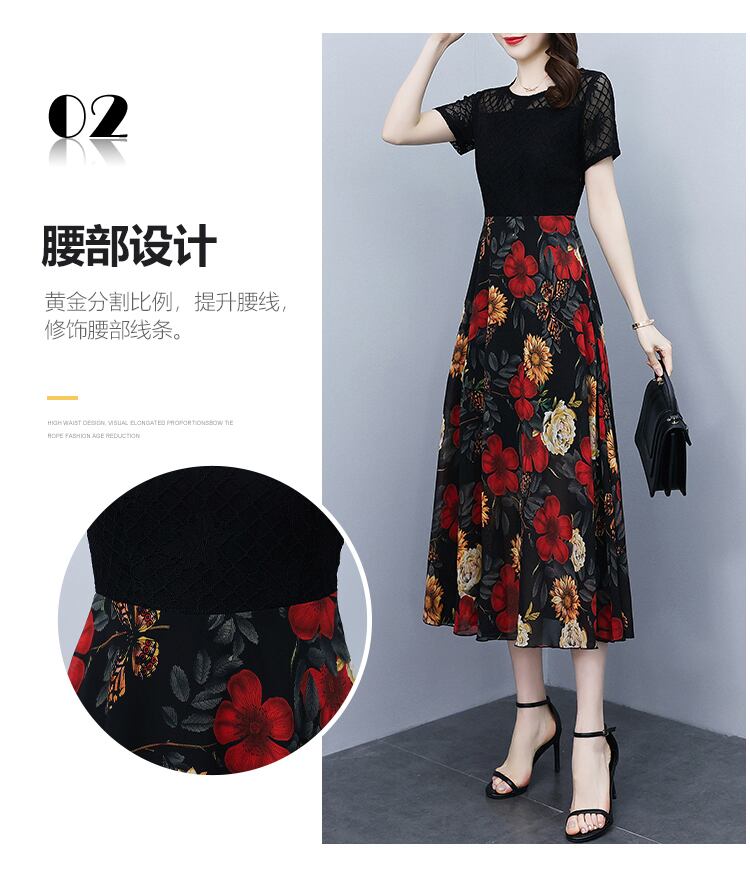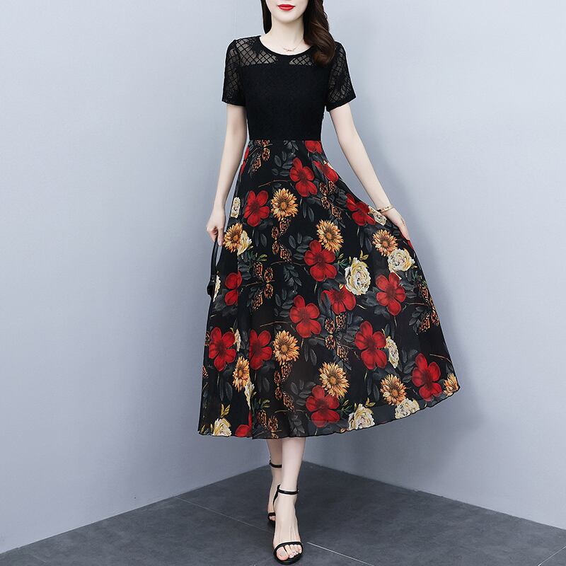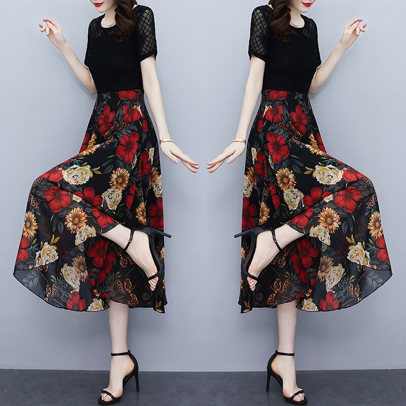 レースプリントドレス サマーウェスト薄手ロングスカート スタイル 大きめサイズ 夏物 ステッチ muto2903710856